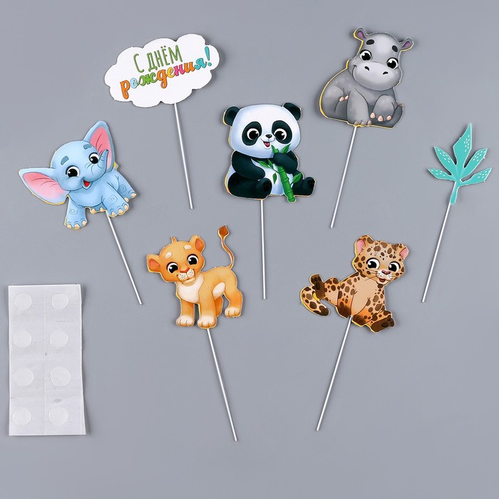 Топпер для торта картон на подложке с проволокой «Зверюшки»
