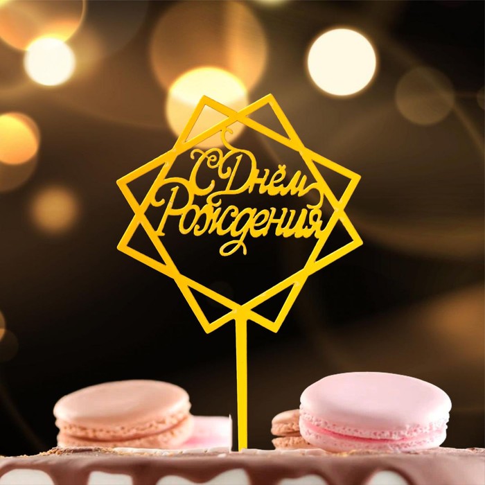 Топпер для торта «С Днём Рождения», акрил, золотой