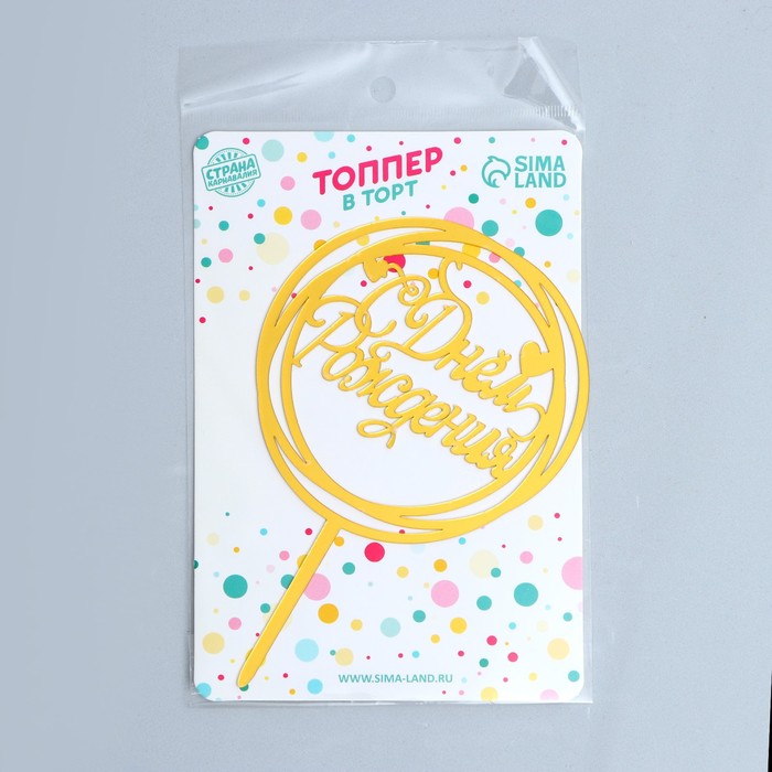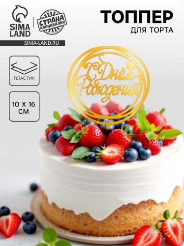 Топпер для торта «С Днём Рождения», золотой