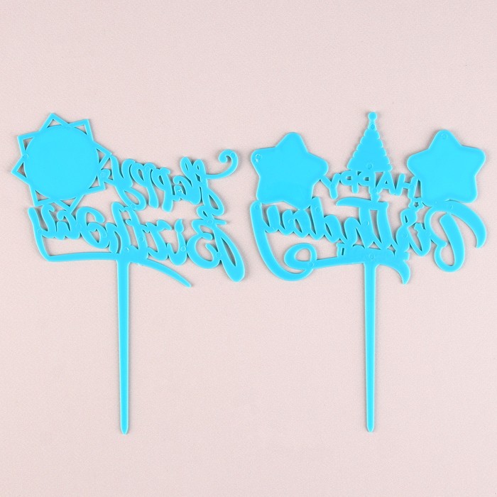 Набор топперов «С днём рождения» поможет легко и быстро украсить торт к любому дню рождения. Украшения выполнены из качественного пластика и легко устанавливаются благодаря крепкому держателю. Этот набор создаст тёплую и праздничную атмосферу.