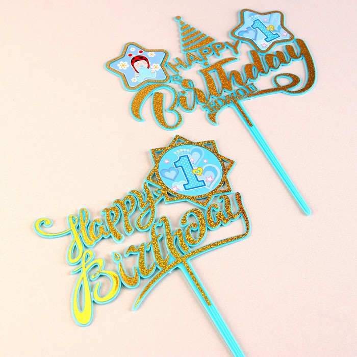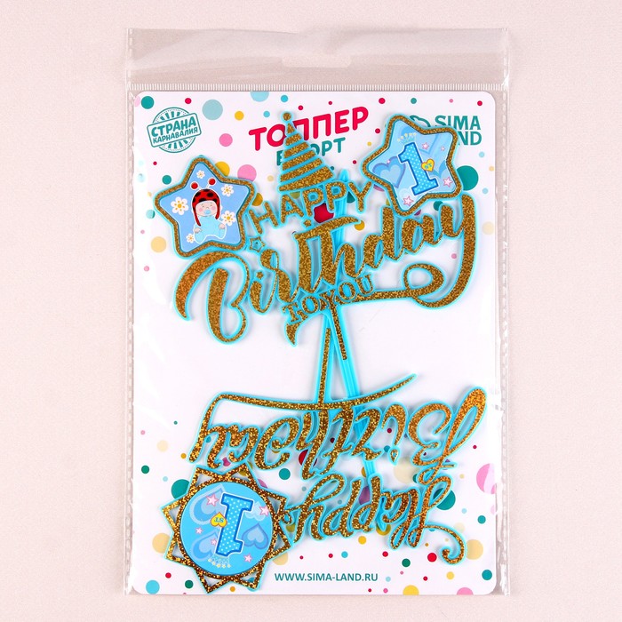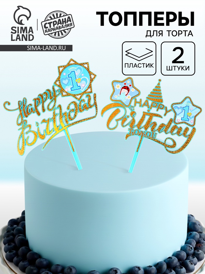 Топперы для торта «С днём рождения, 1 год», 2 штуки