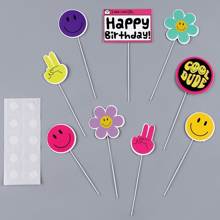 Топперы для торта «Стикеры», картон на подложке, с проволокой