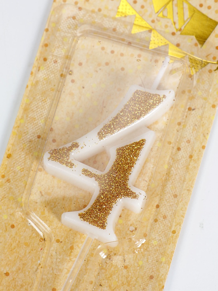 УЦЕНКА Свеча для торта «Блёстки» цифра 4, золотистая, 5.2 см