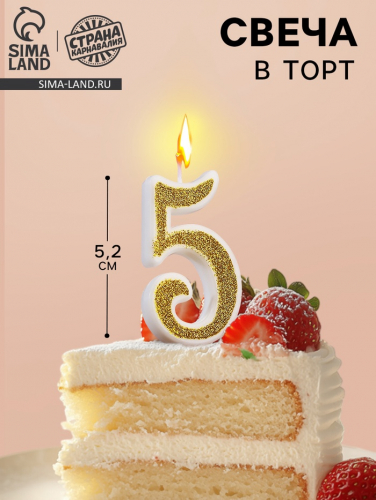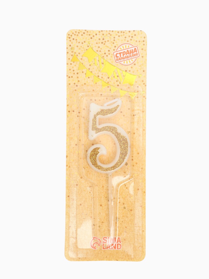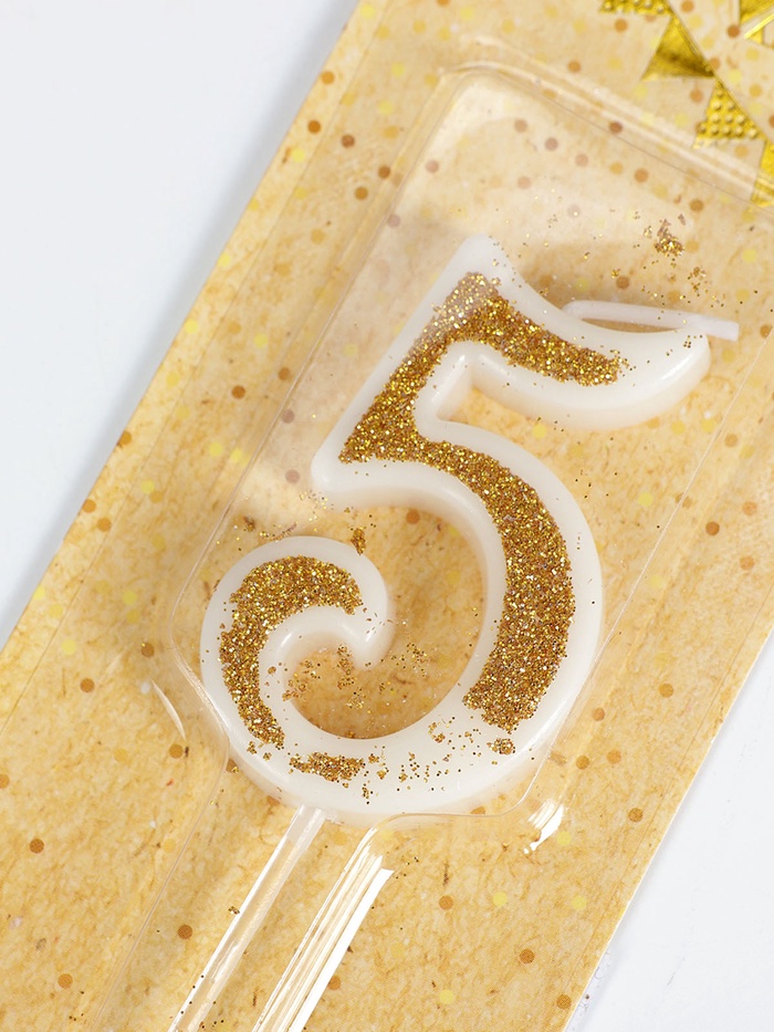 УЦЕНКА Свеча для торта «Блёстки» цифра 5, золотистая, 5.2 см