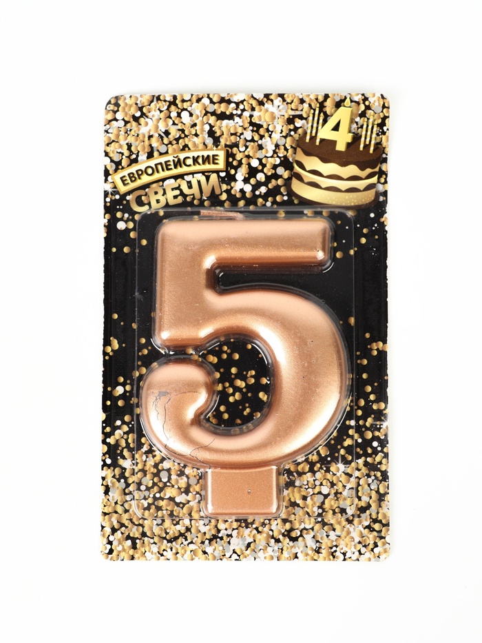 УЦЕНКА Свеча для торта "Европейская ГИГАНТ", цифра 5, 7 см, розовое золото