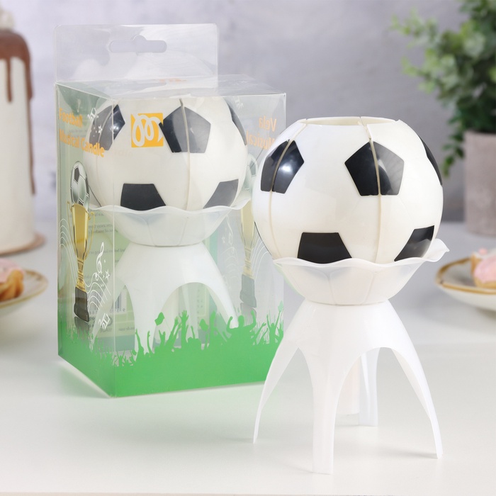 УЦЕНКА Свеча для торта музыкальная «Мяч», бело- чёрная