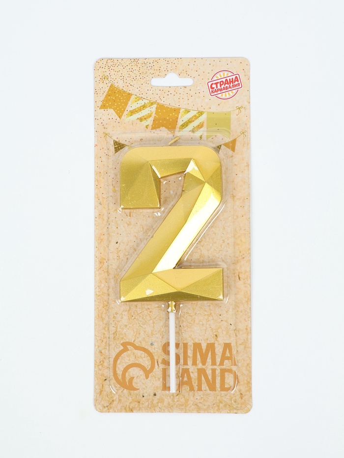УЦЕНКА Свеча ГИГАНТ в торт на шпажке «Алмаз», цифра "2", золотая, 9 см