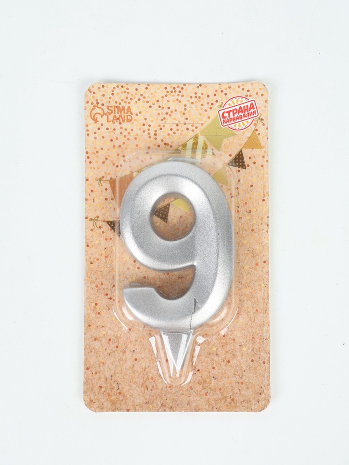 УЦЕНКА Свеча в торт "Грань", цифра "9", серебряный металлик, 6,5 см