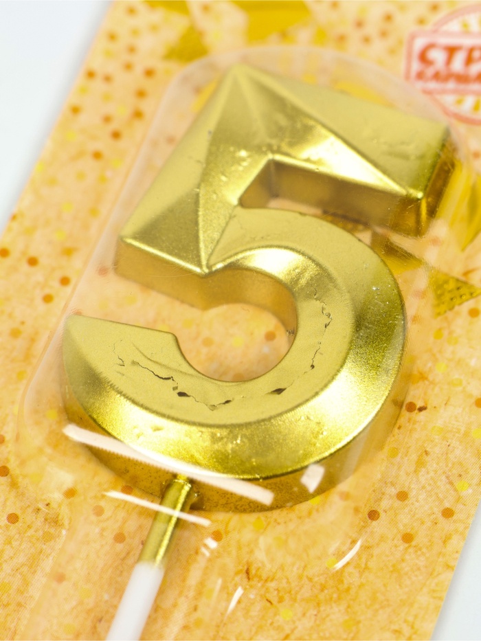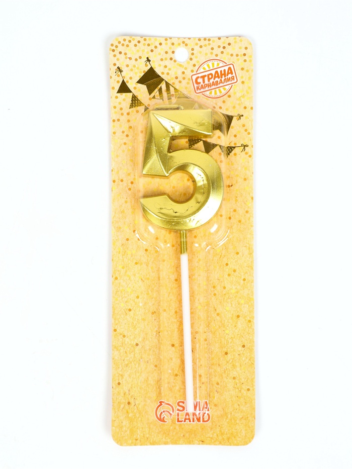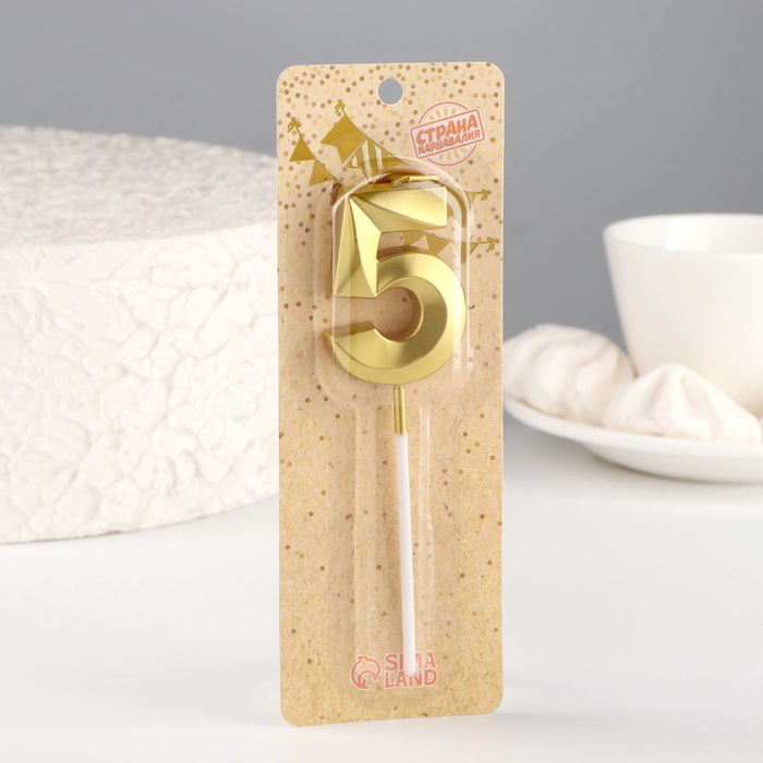 УЦЕНКА Свеча в торт на шпажке «‎Грань», цифра 5, золотая, 5 см