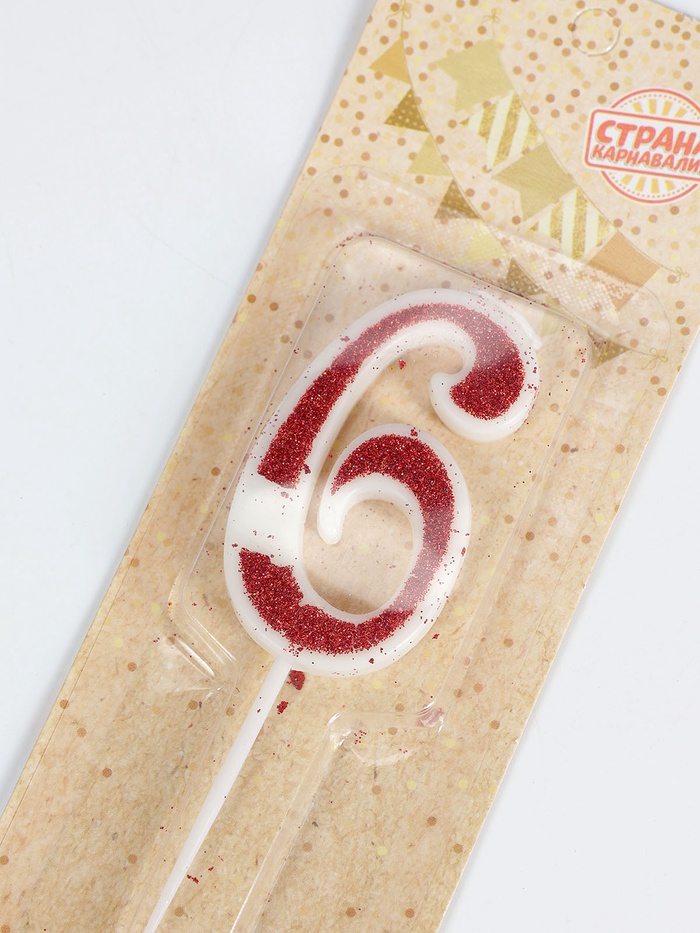 УЦЕНКА Свеча в торт на шпажке «Рубиновая коллекция», цифра 6, 5.2 см