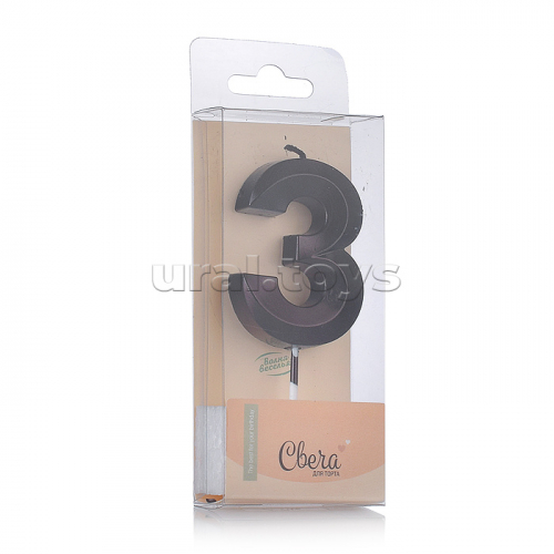Свеча Цифра, 3 Грани, Черный, Металлик, 4,2*6 + 4,5 см, 1 шт. с держателем