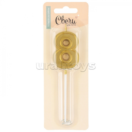 Свеча Цифра, 8 Воздушный жемчуг, на шпажке, Нежно-розовый, Перламутр, 6 см, 1 шт. с держат.