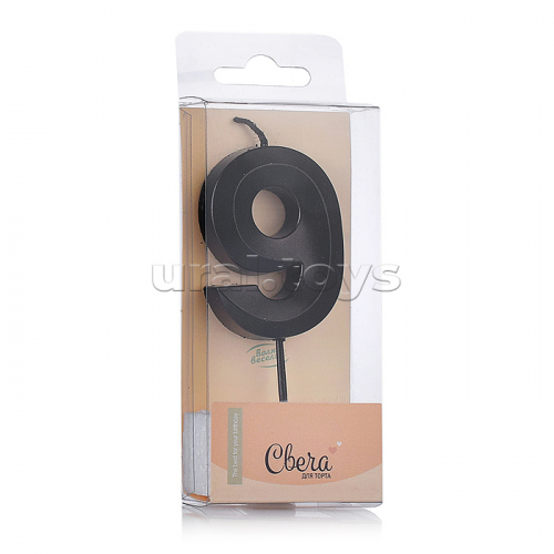 Свеча Цифра, 9 Грани, Черный, Металлик, 4,2*6 + 4,5 см, 1 шт. с держателем