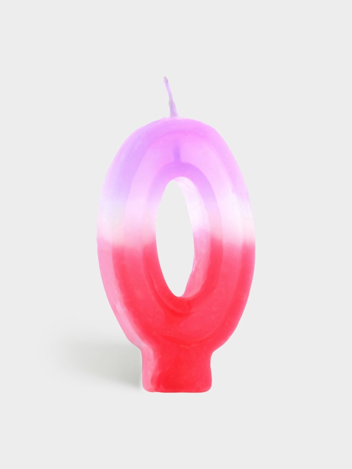 Свеча цифра «0» — яркий акцент для торта, выполненная в градиенте от нежно-фиолетового к розовому. Высота 8 см делает её заметной даже на большом десерте, а мягкие пастельные тона добавляют празднику лёгкости и утончённости. Без аромата — не перебивает вкус выпечки и подходит для любого возраста.