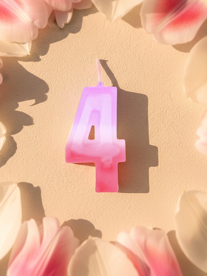 Эта свеча — не просто цифра, а символ надёжности. Четвёртый день, четвёртая победа, четвёртый торт — всё становится основательнее, увереннее и полнее. Без запаха, без шума — только свет, цвет и момент, который хочется запомнить.