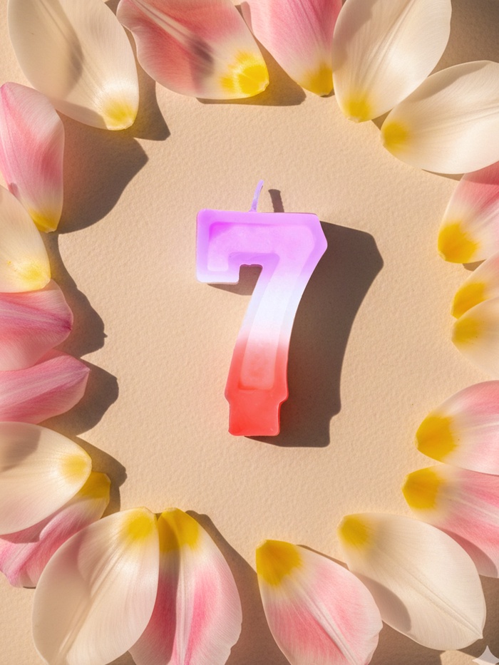 Эта свеча — не просто цифра, а символ завершения цикла. Седьмой день, седьмая победа, седьмой торт — всё становится ярче, осознаннее и полнее. Без запаха, без шума — только свет, цвет и момент, который хочется запомнить.
