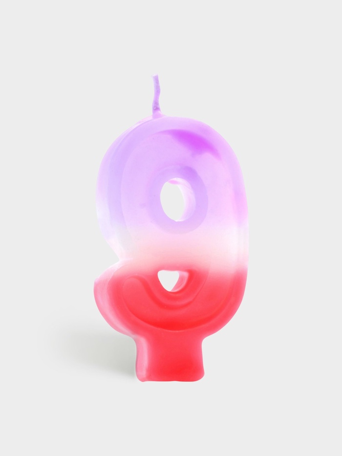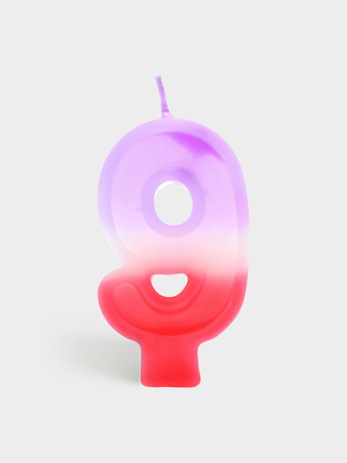 Свеча цифра «9» — яркий акцент для торта в градиенте от нежно-фиолетового к розовому. Высота 8 см делает её заметной даже на большом десерте, а мягкие пастельные тона добавляют празднику утончённости и лёгкости. Без аромата — не перебивает вкус выпечки и подходит для любого возраста.