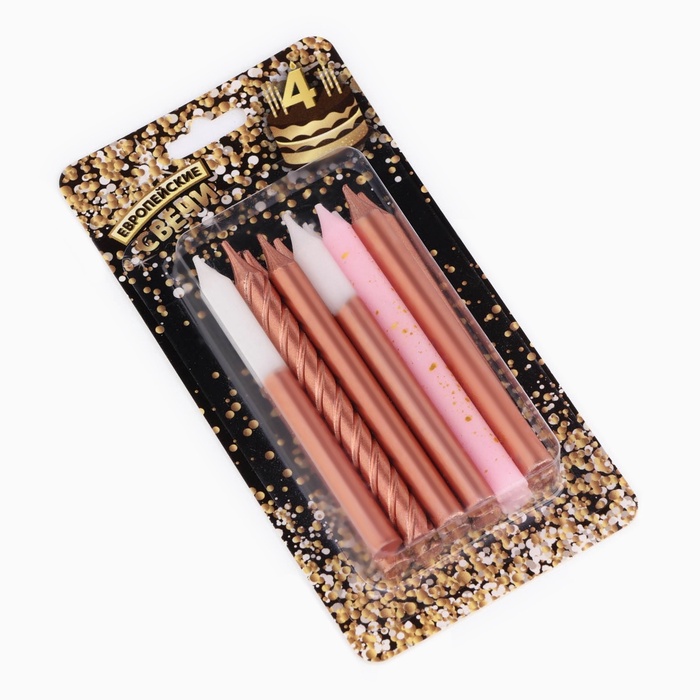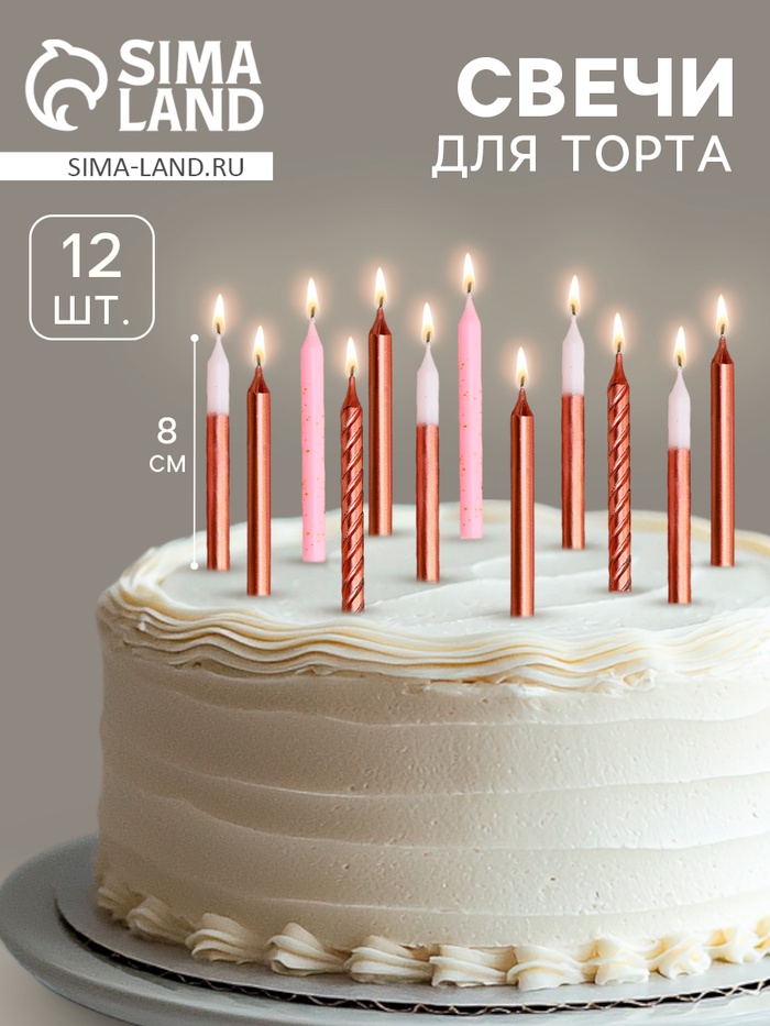 Свеча для торта «Розовая вечеринка», 12 шт., 8 см, белый и розовый металлик
