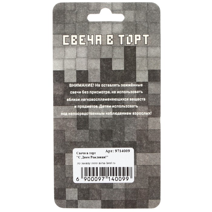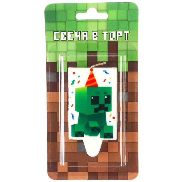 Свеча в торт "С Днем Рождения!", Майнкрафт. 4,5х8,4 см