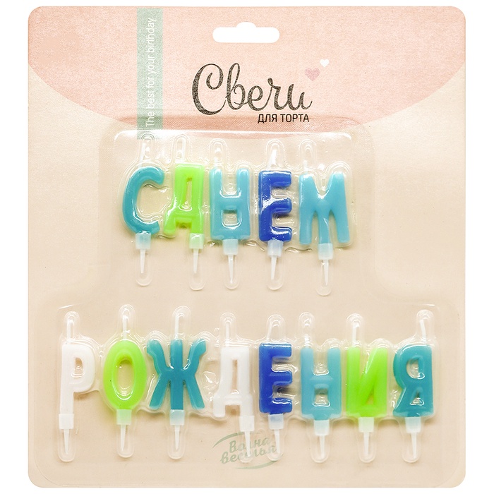 Свеча в торт «Буквы С Днем Рождения», для мальчика, 2×4 см