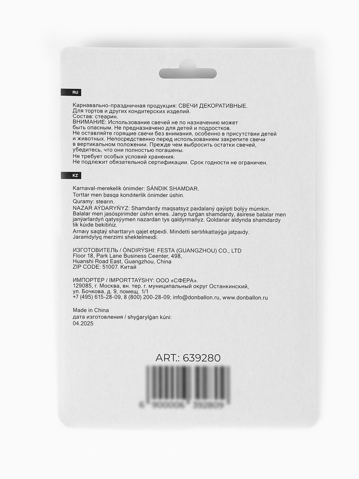 При транспортировке в зимнее (холодное) время года коробки со свечами вскрывать после того, как они постоят на Вашем теплом складе не менее суток.