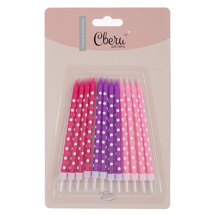 Свечи в торт «Белые точки», 10 см, 12 шт.