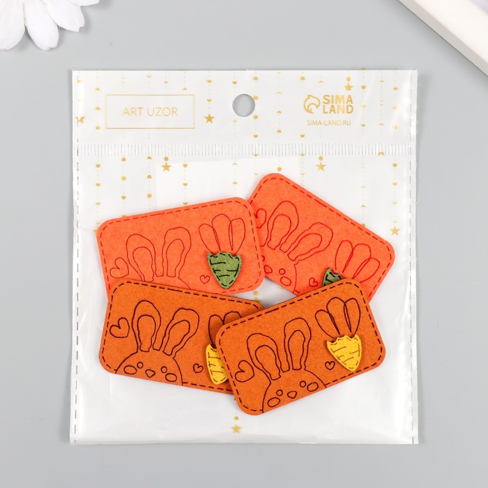 Декор для творчества искусственная замша «Зайка с морковкой», 5.5×3.4 см, МИКС