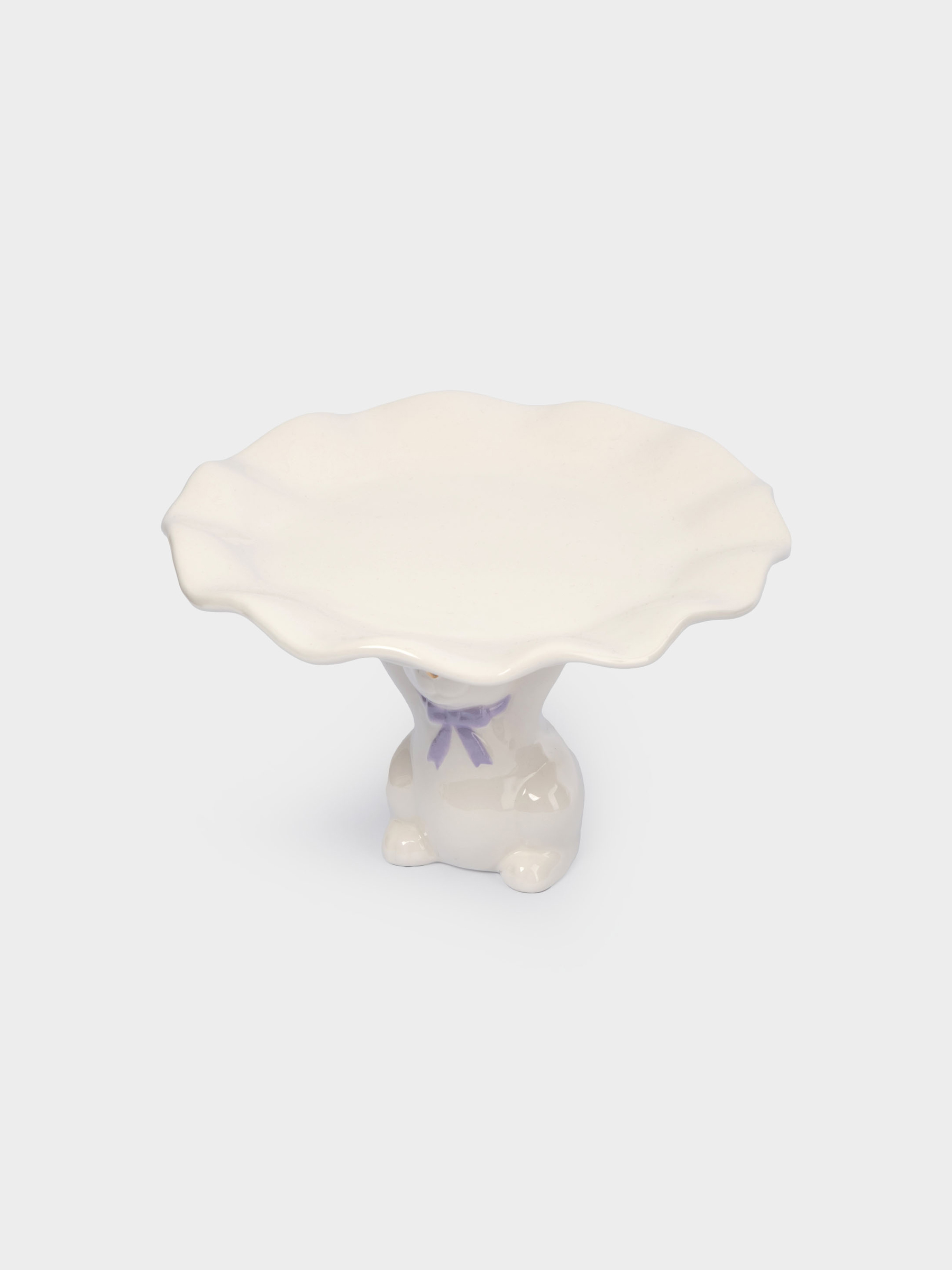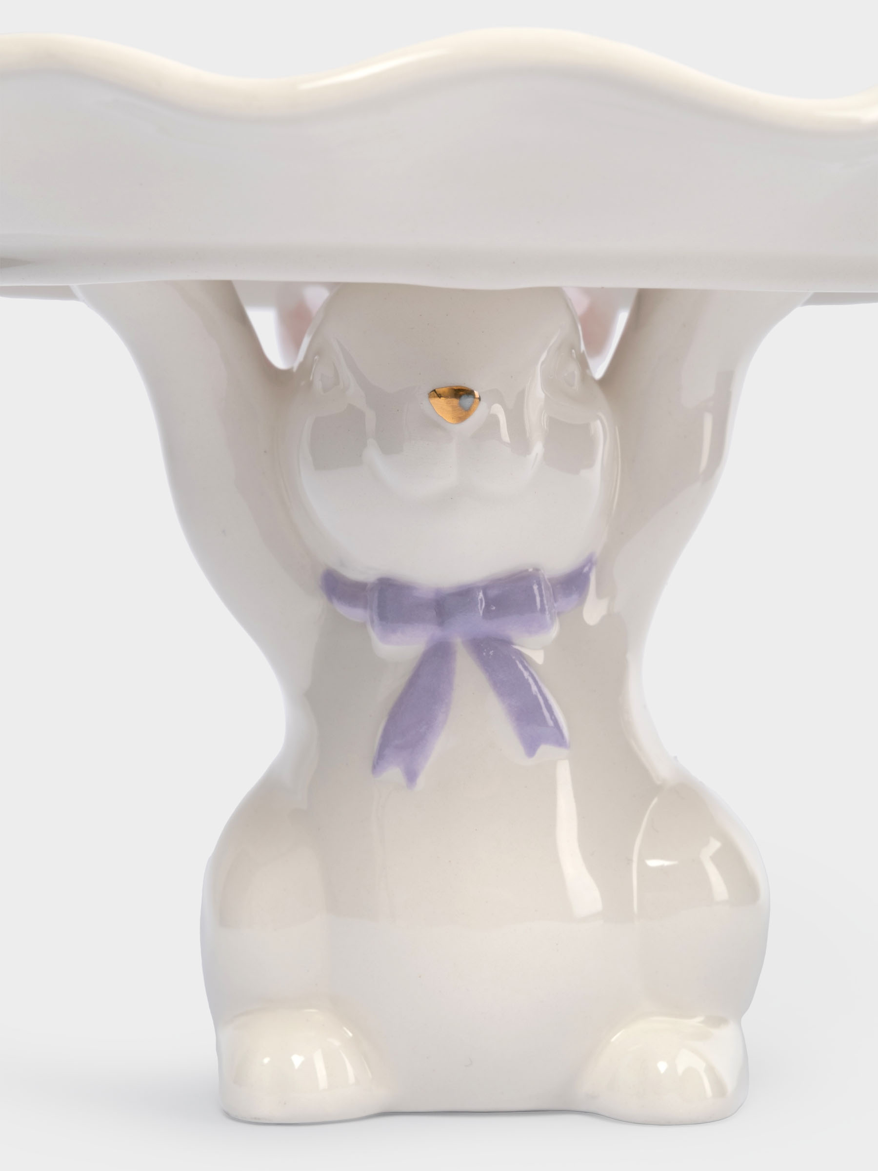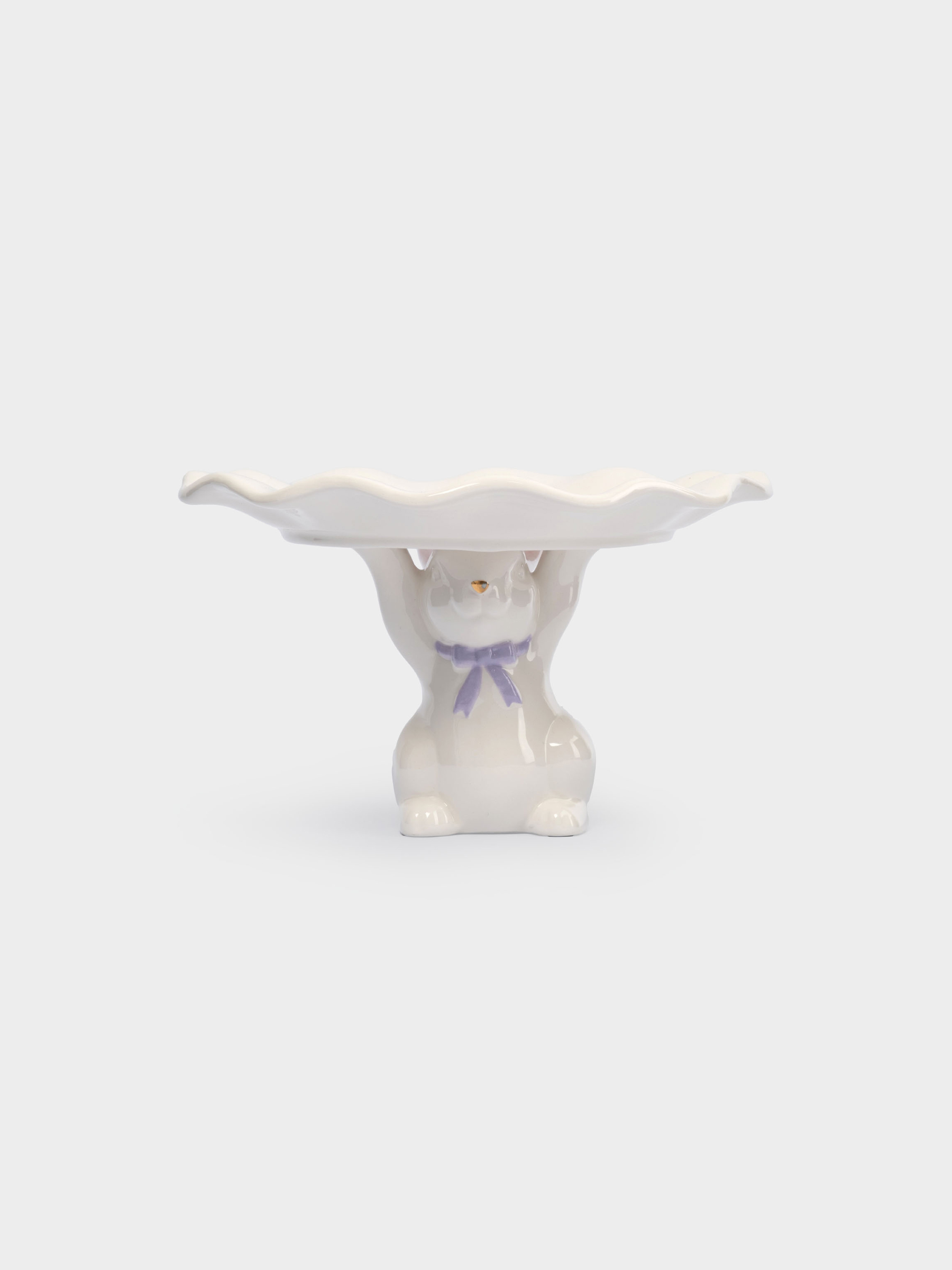 Блюдо на ножке, 19х12 см, керамика, молочно-золотистое, Кролик с бантом, White Rabbit
