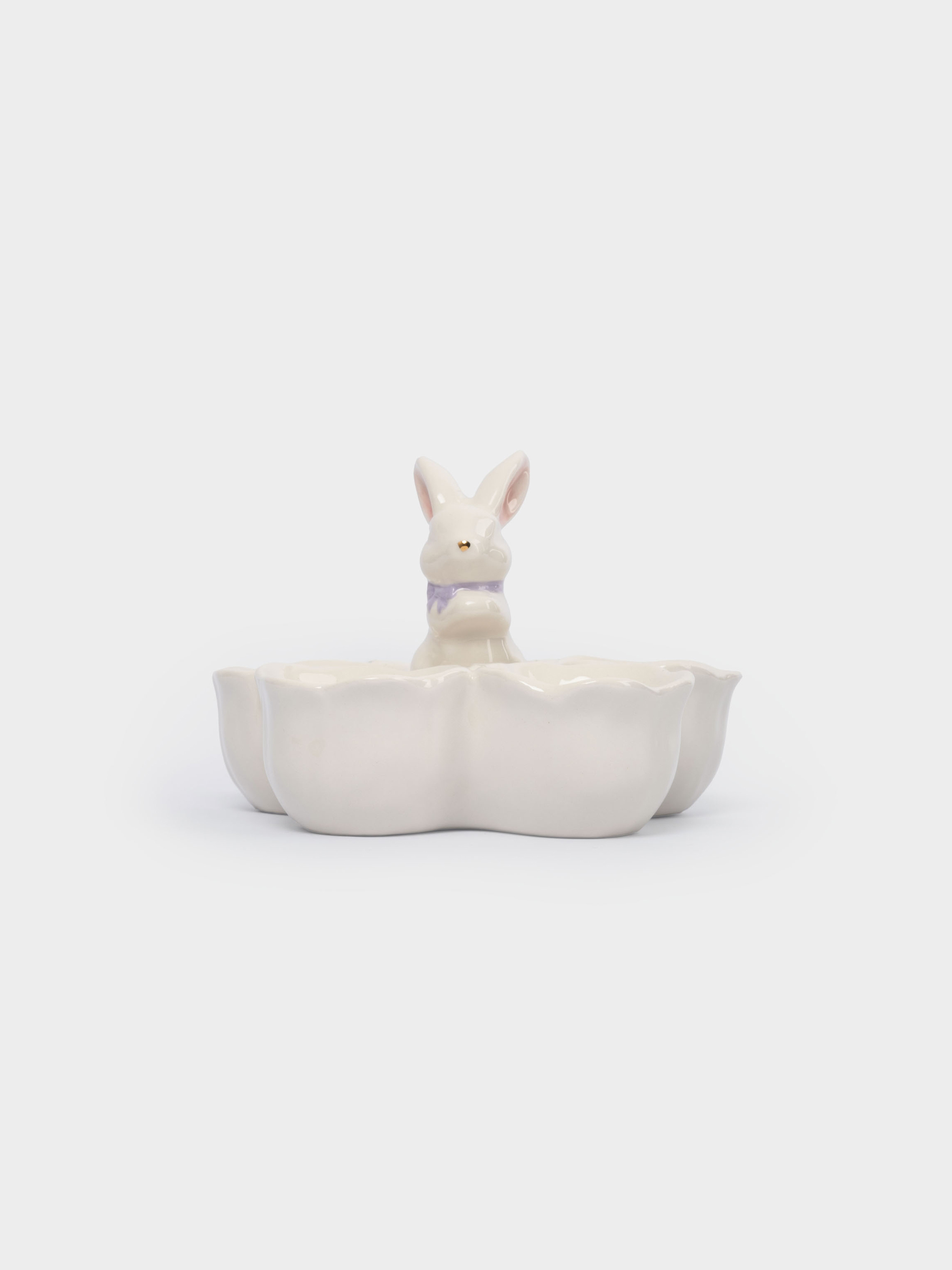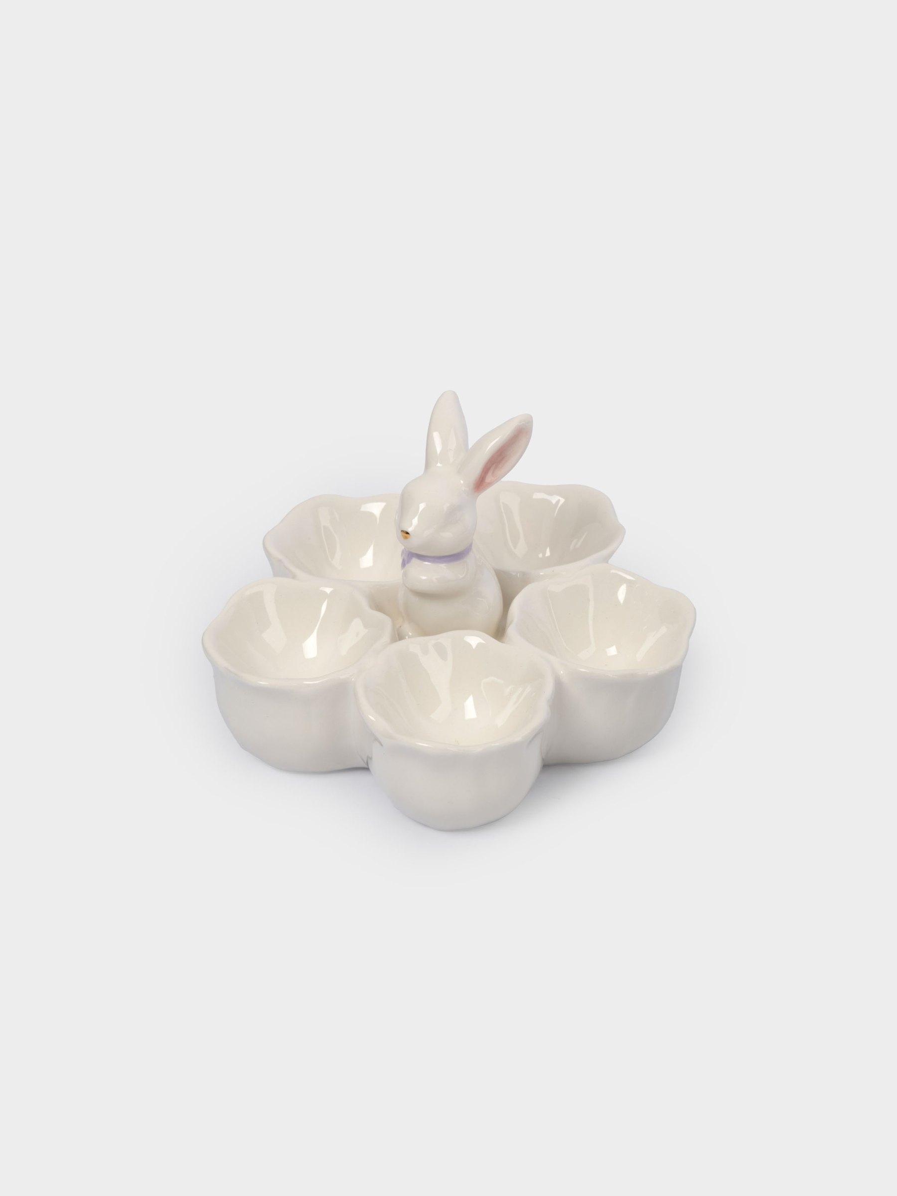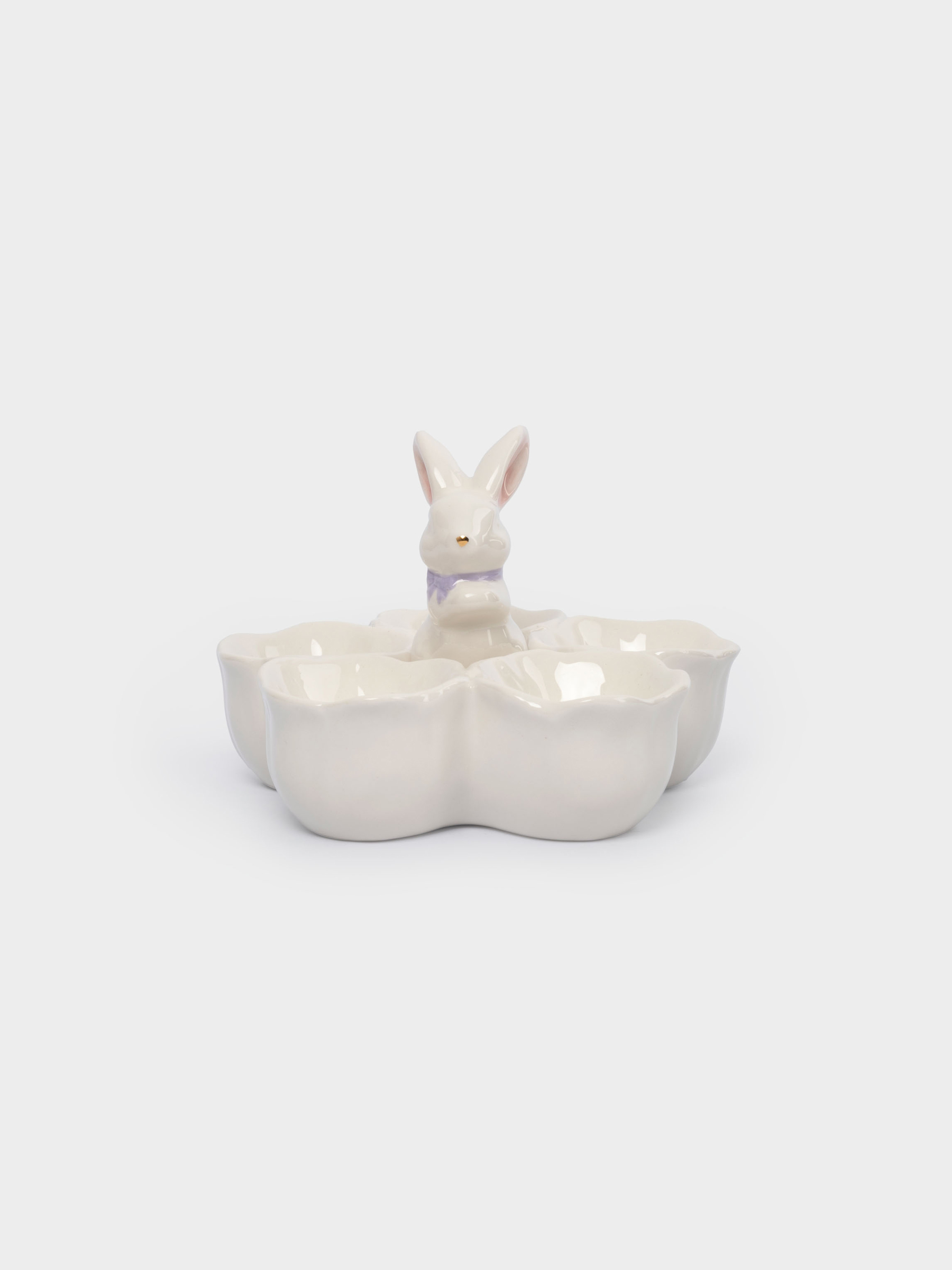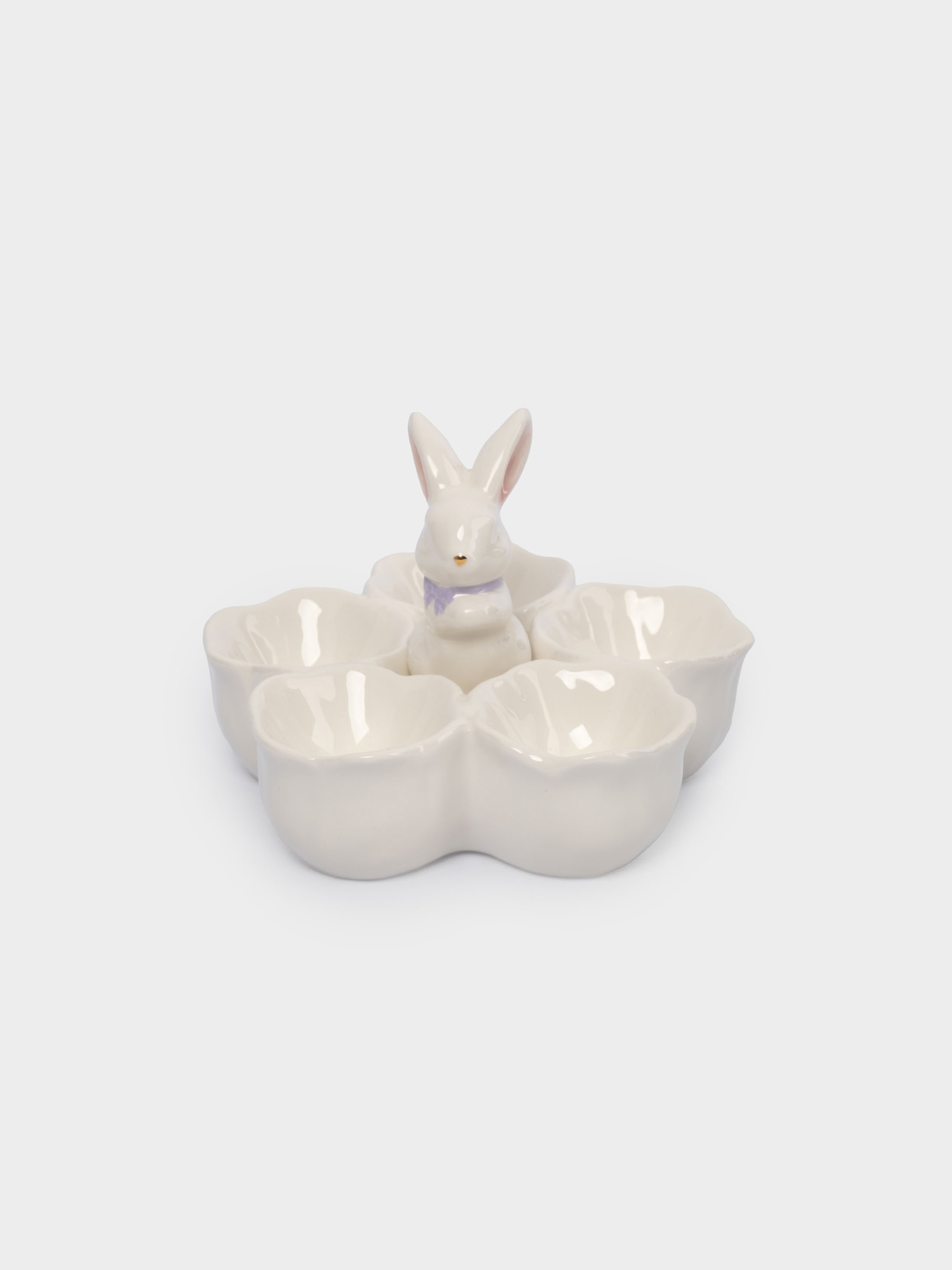 Блюдо пасхальное, 12х9 см, 5 отд, керамика, молочно-золотистое, Кролик в цветах, White Rabbit