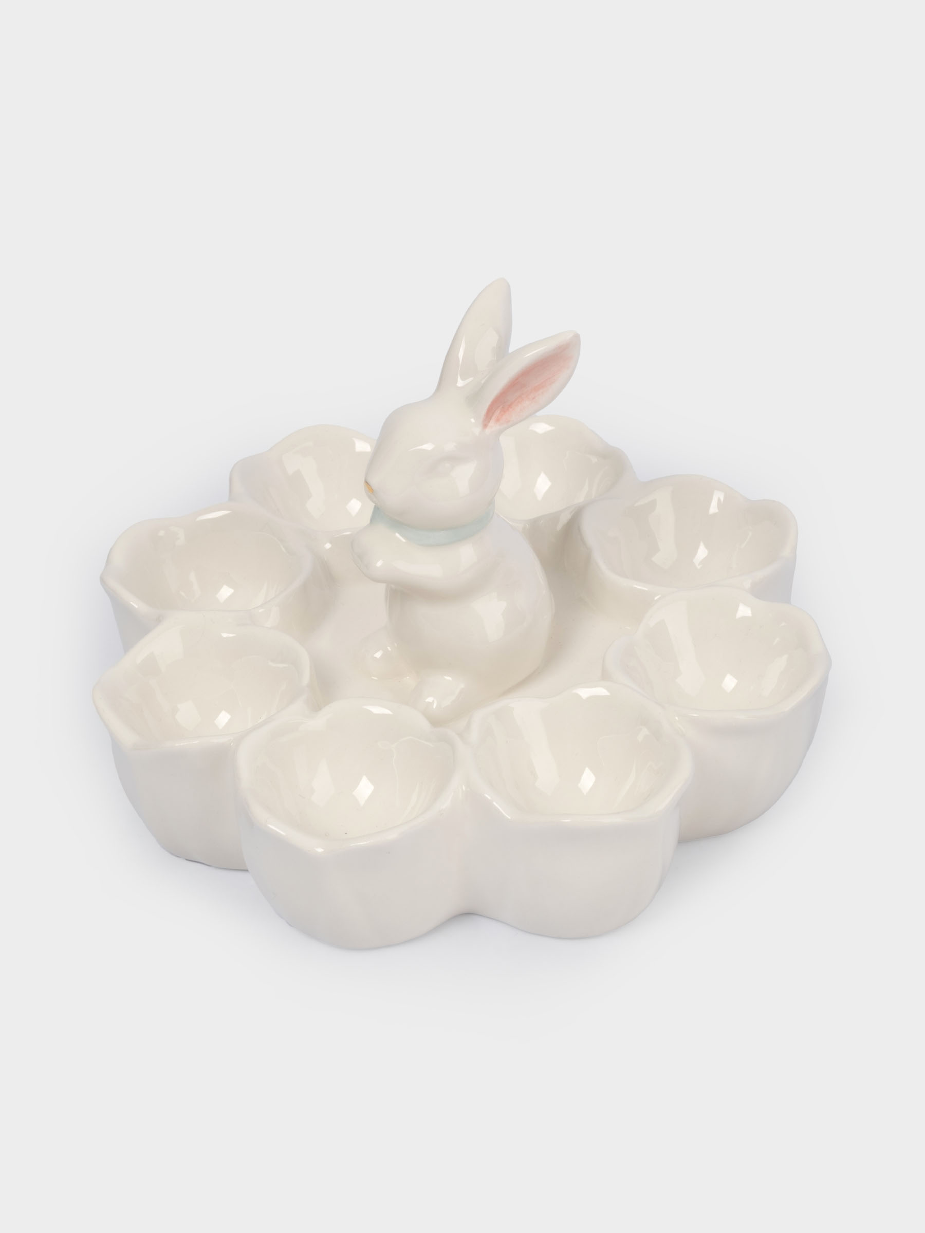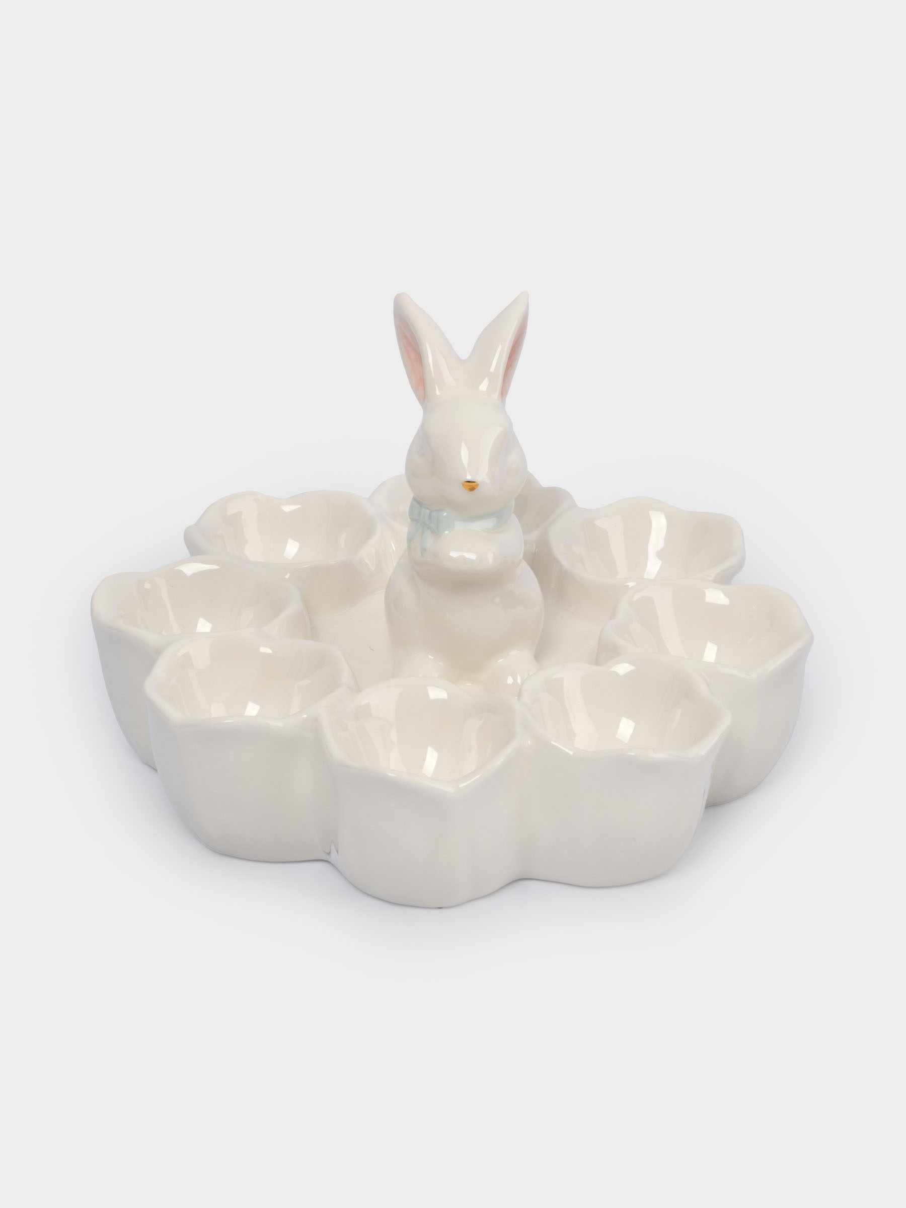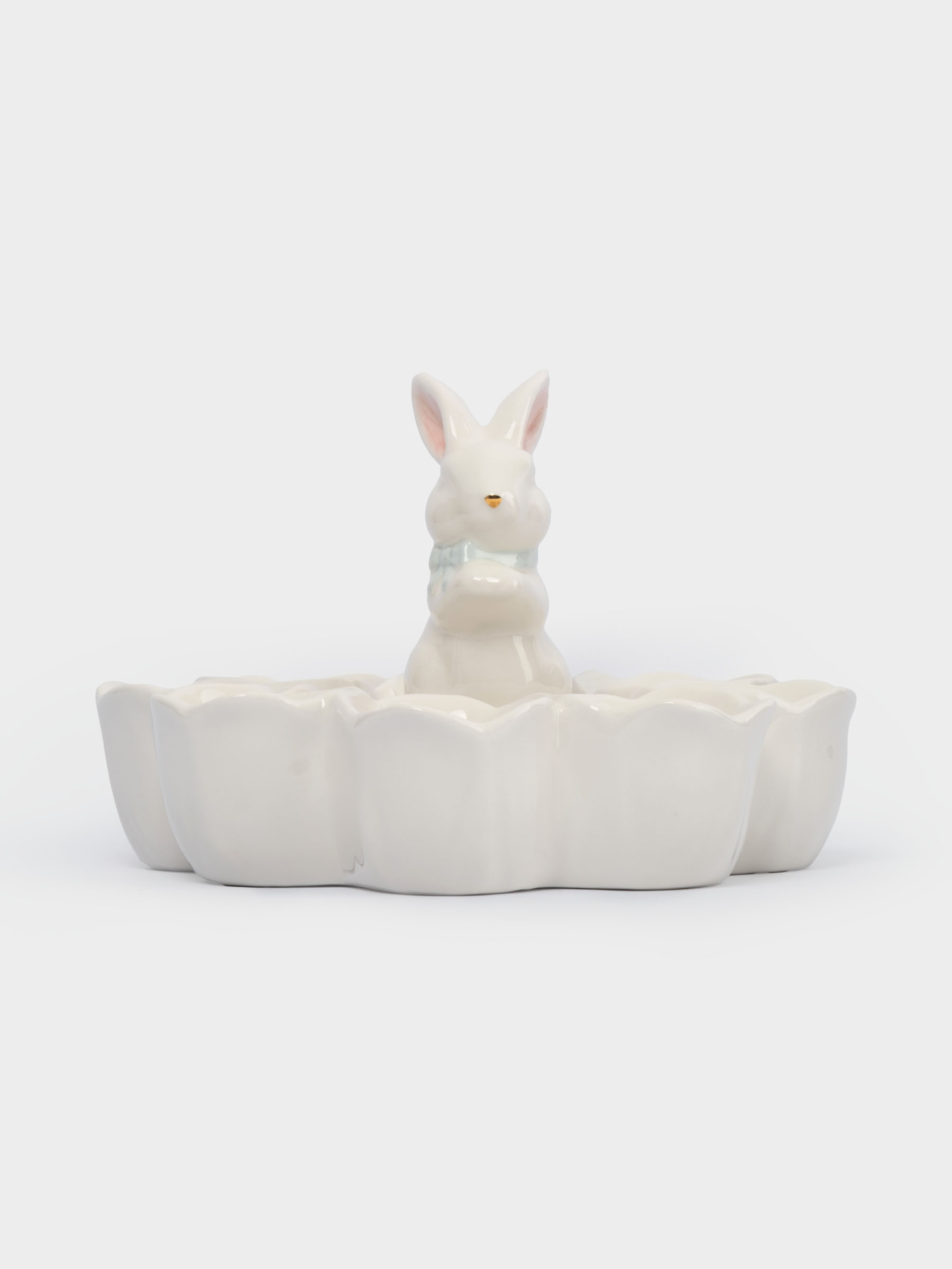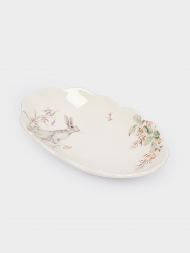 Блюдо пасхальное, 18х12 см, 8 отд, керамика, молочно-золотистое, Кролик в цветах, White Rabbit