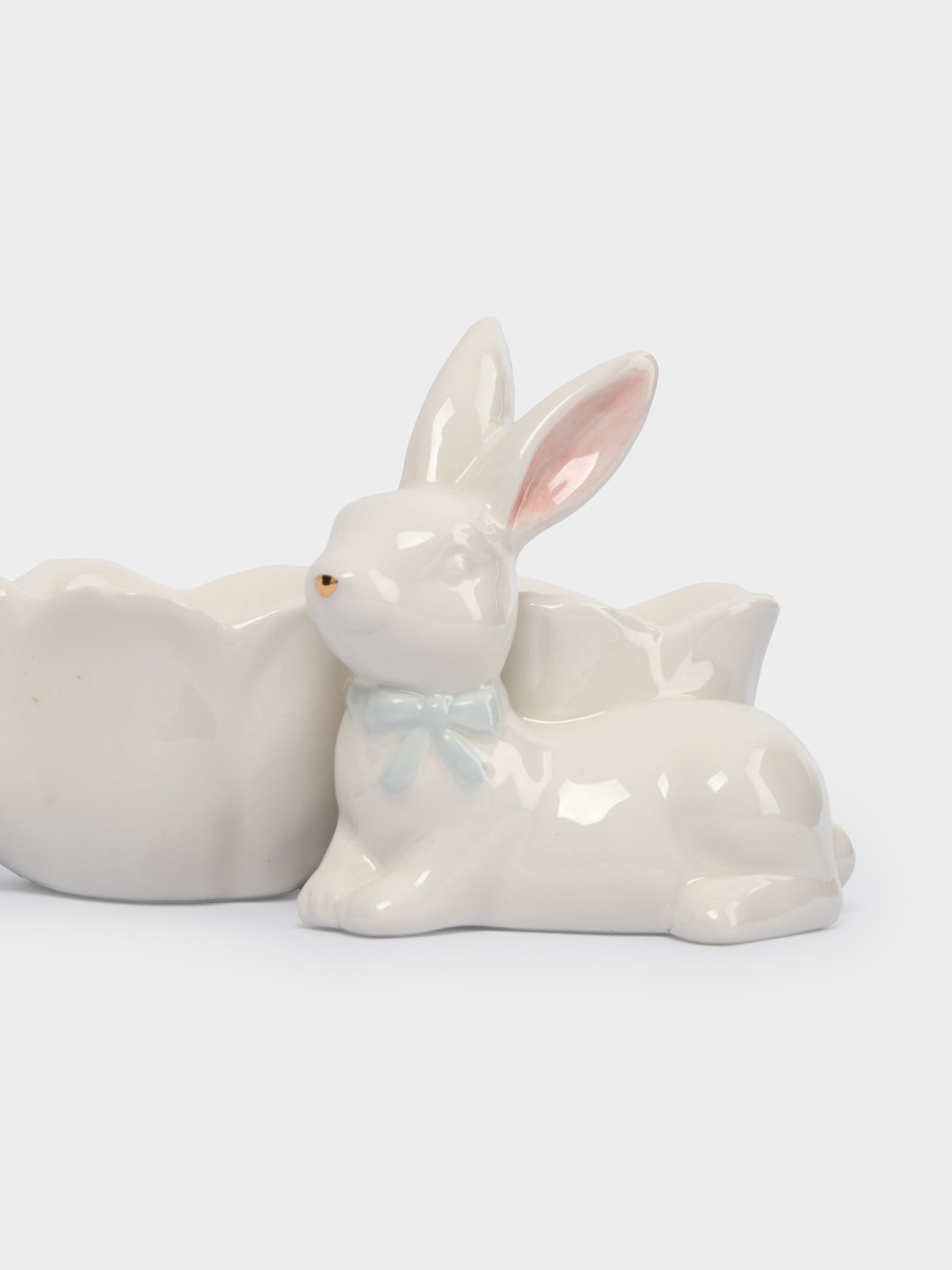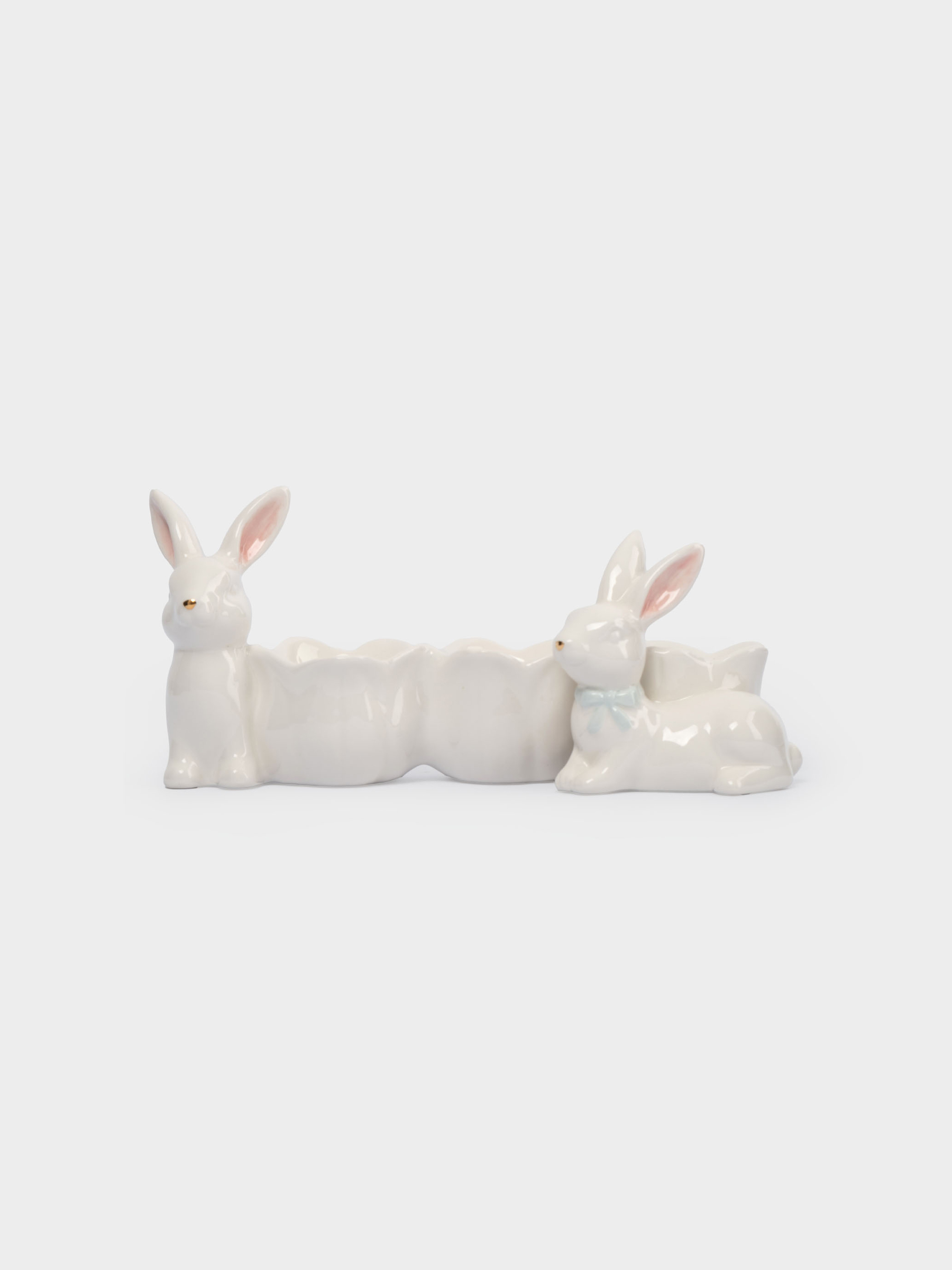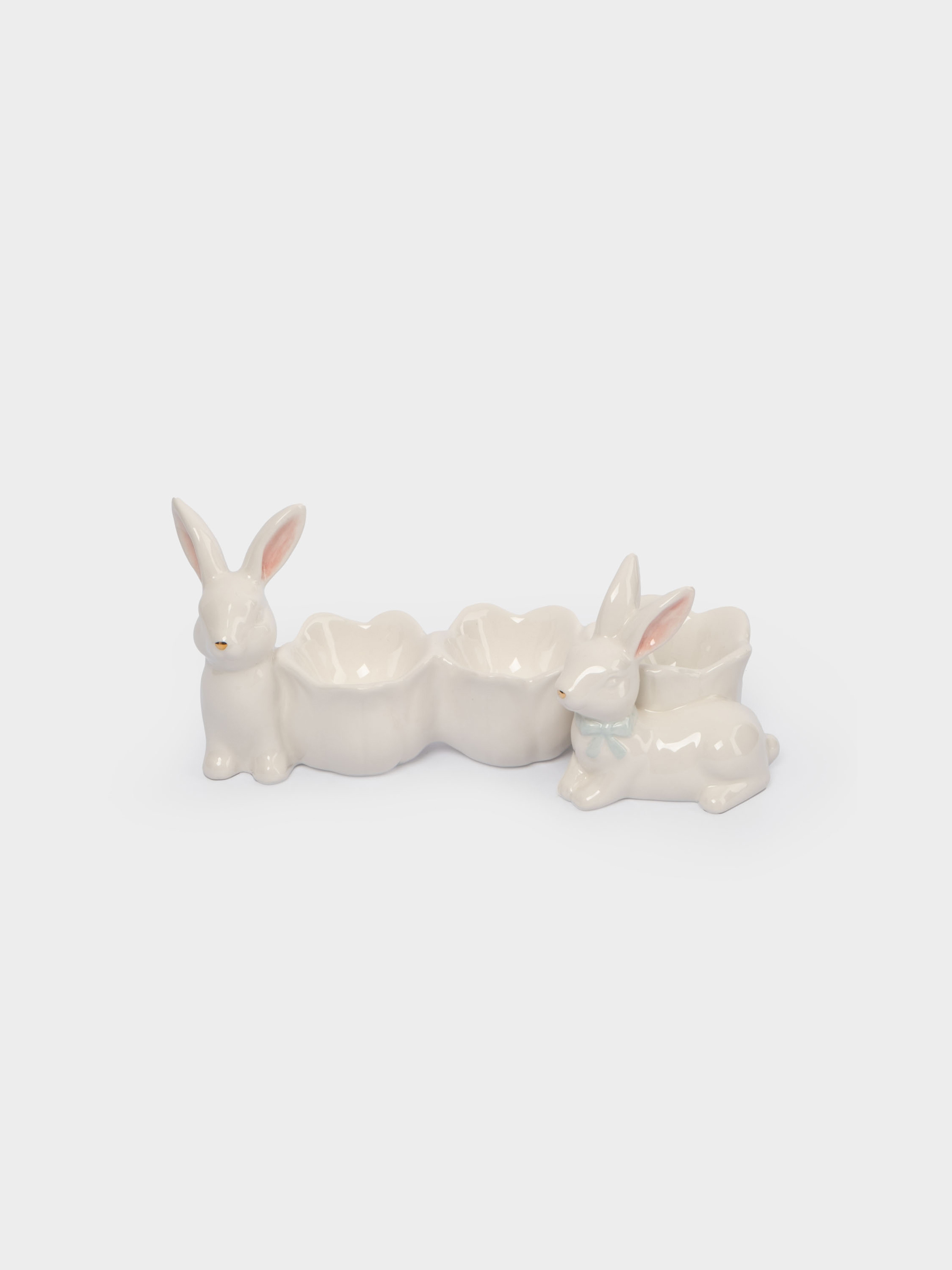 Блюдо пасхальное, 20х9 см, 3 отд, керамика, молочно-золотистое, Кролики с цветами, White Rabbit
