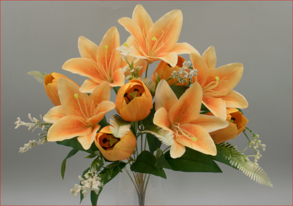 Букет атласных Лилий и Тюльпанов 44 см. в высоту (10-11 бутонов). 300306473
