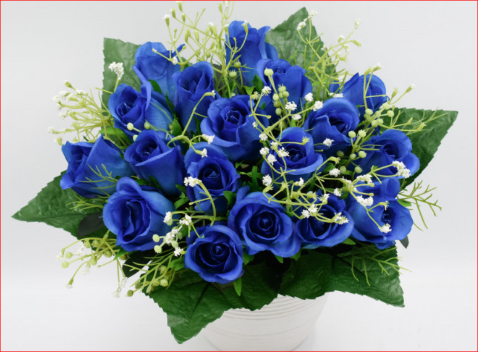Букет шелковых синих роз 40 см. в высоту (17-18 бутонов). 500306002/5