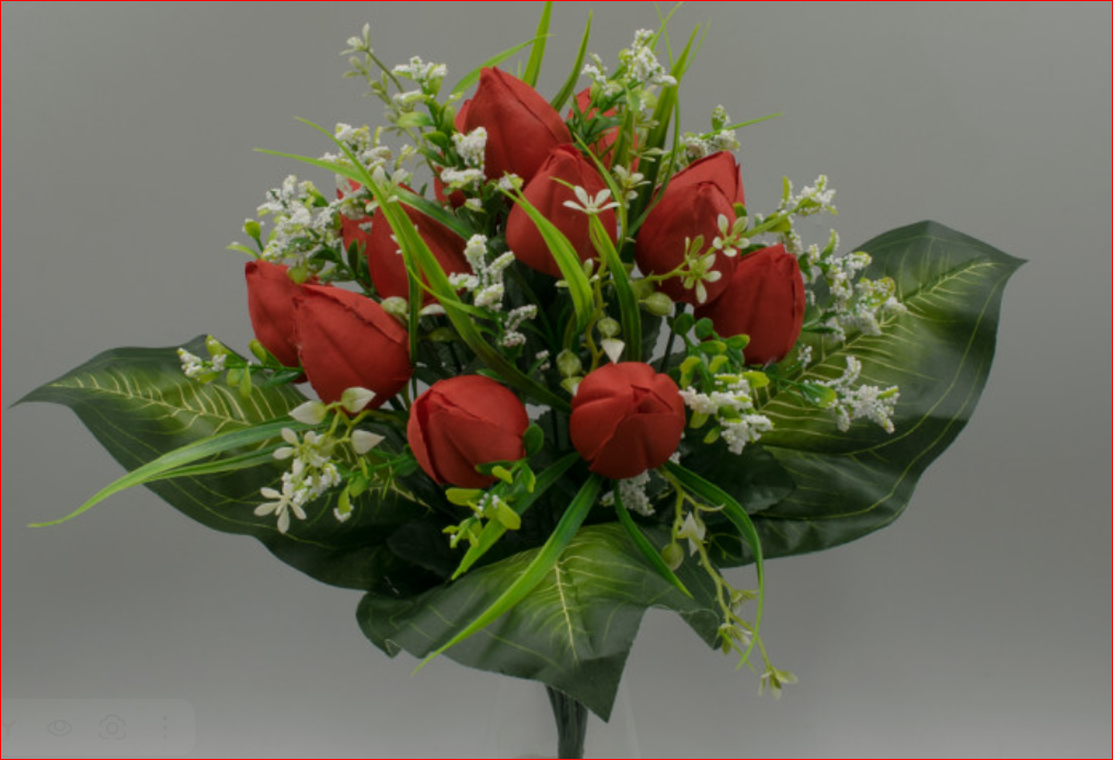 Букет тюльпанов с мелкими цветочками и крупным листом 40 см. в высоту (13-14 цветков + веточки) 200208787/3