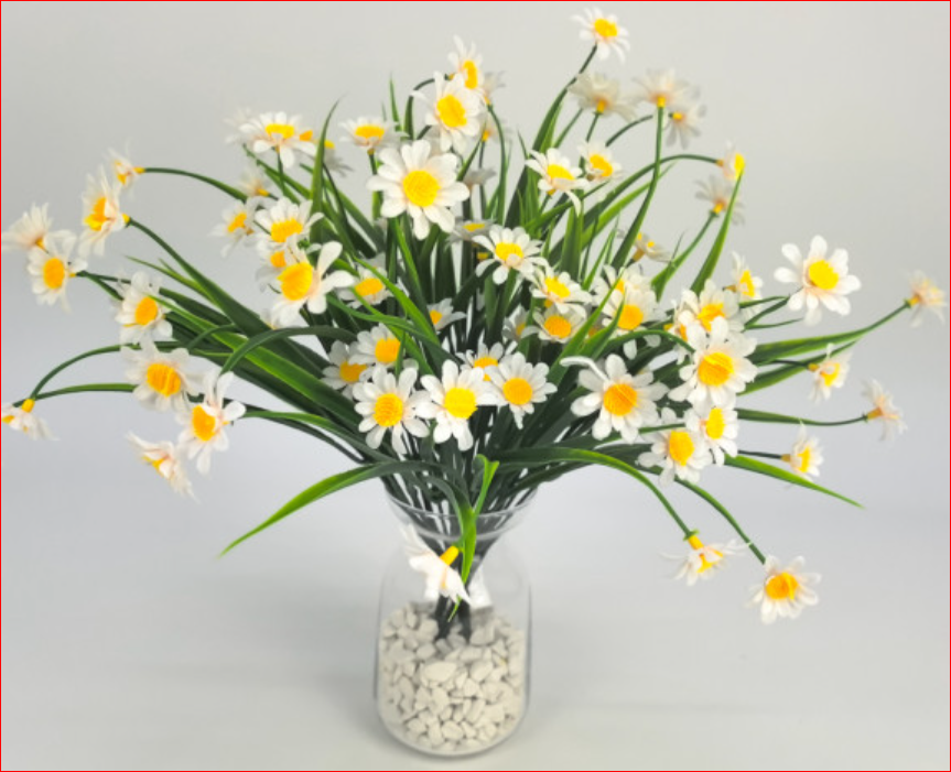 Четыре вот такие ветки пластмассовых ромашек 39 см. в высоту (размер цветков 3 см.). 600304089 (крат40)