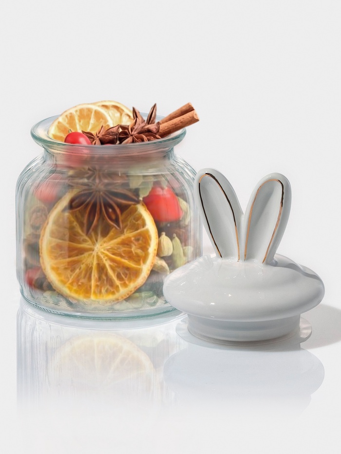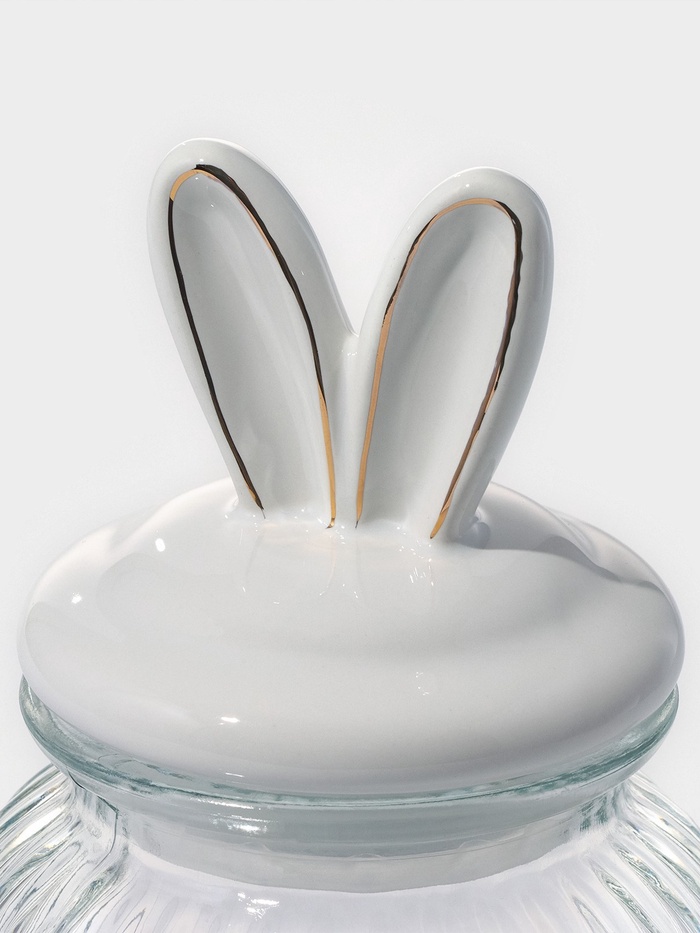 Банка для сыпучих Доляна «Зайка в золотом», 600 мл, с керамической крышкой, стекло, прозрачная