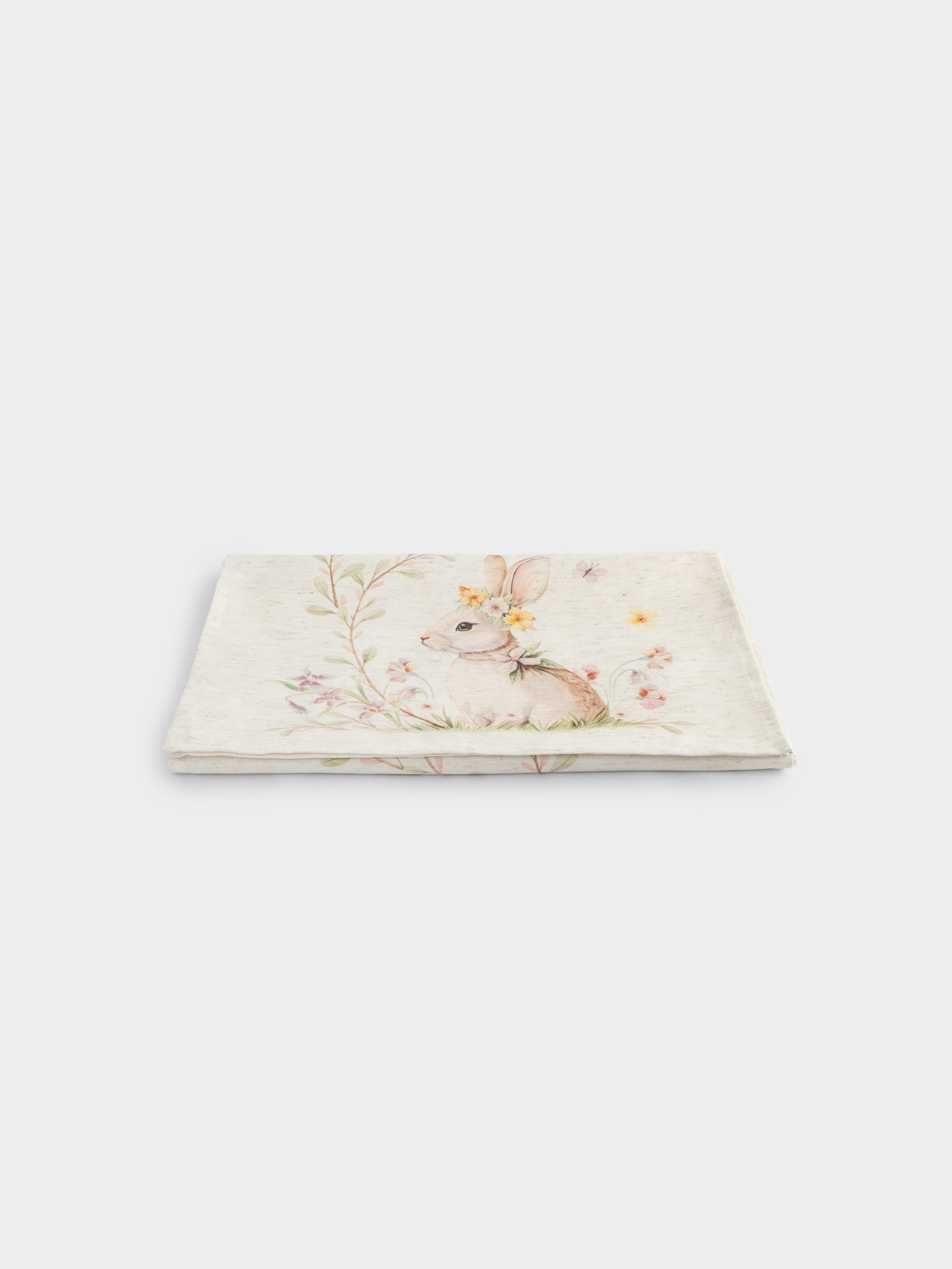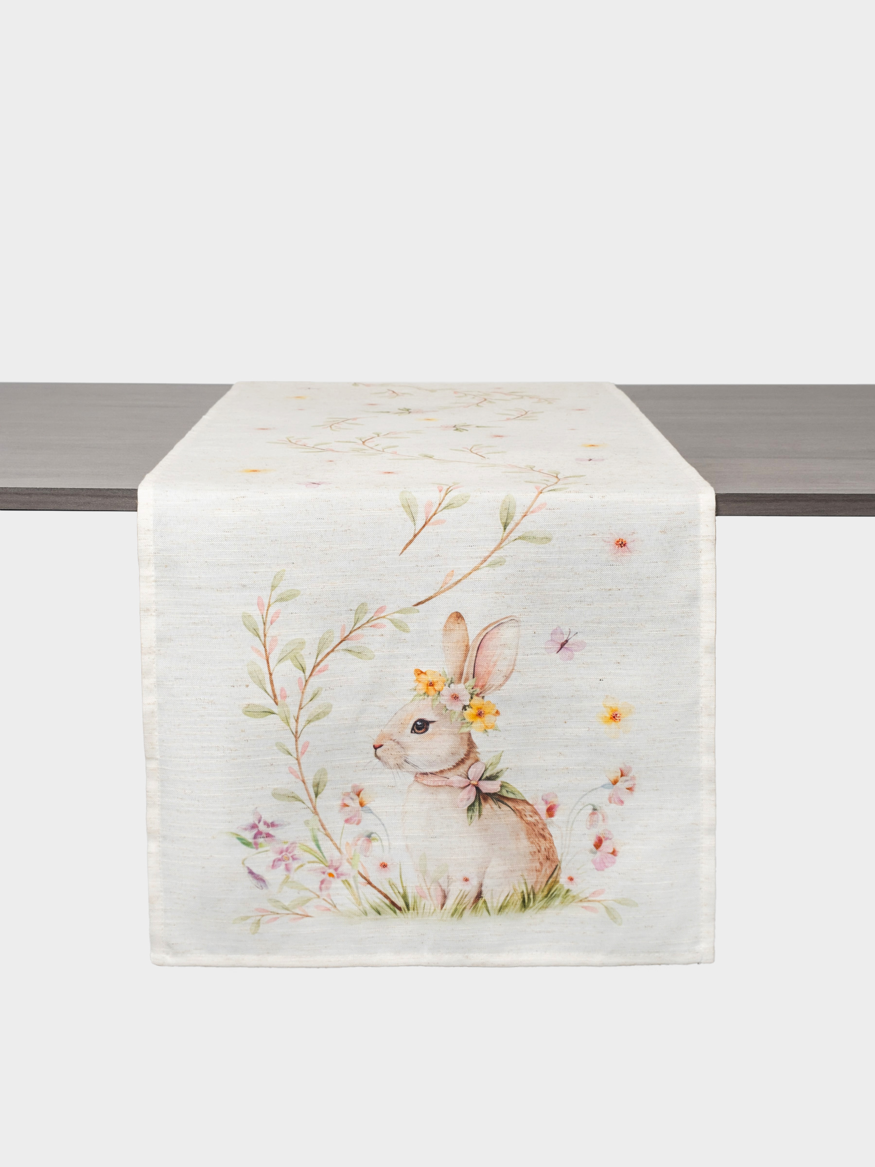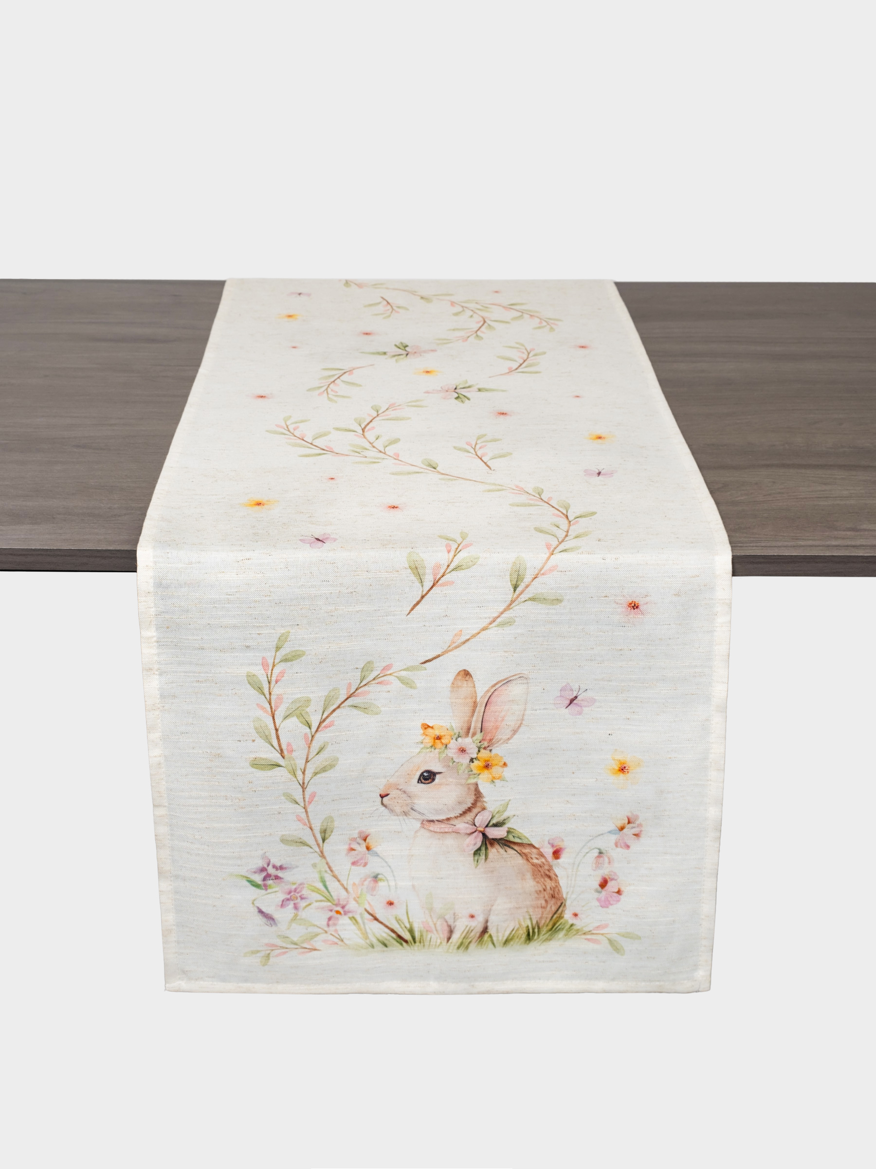 Дорожка настольная, 40х160 см, полиэстер/лен, бежевая, Кролик в цветах, Easter rabbit