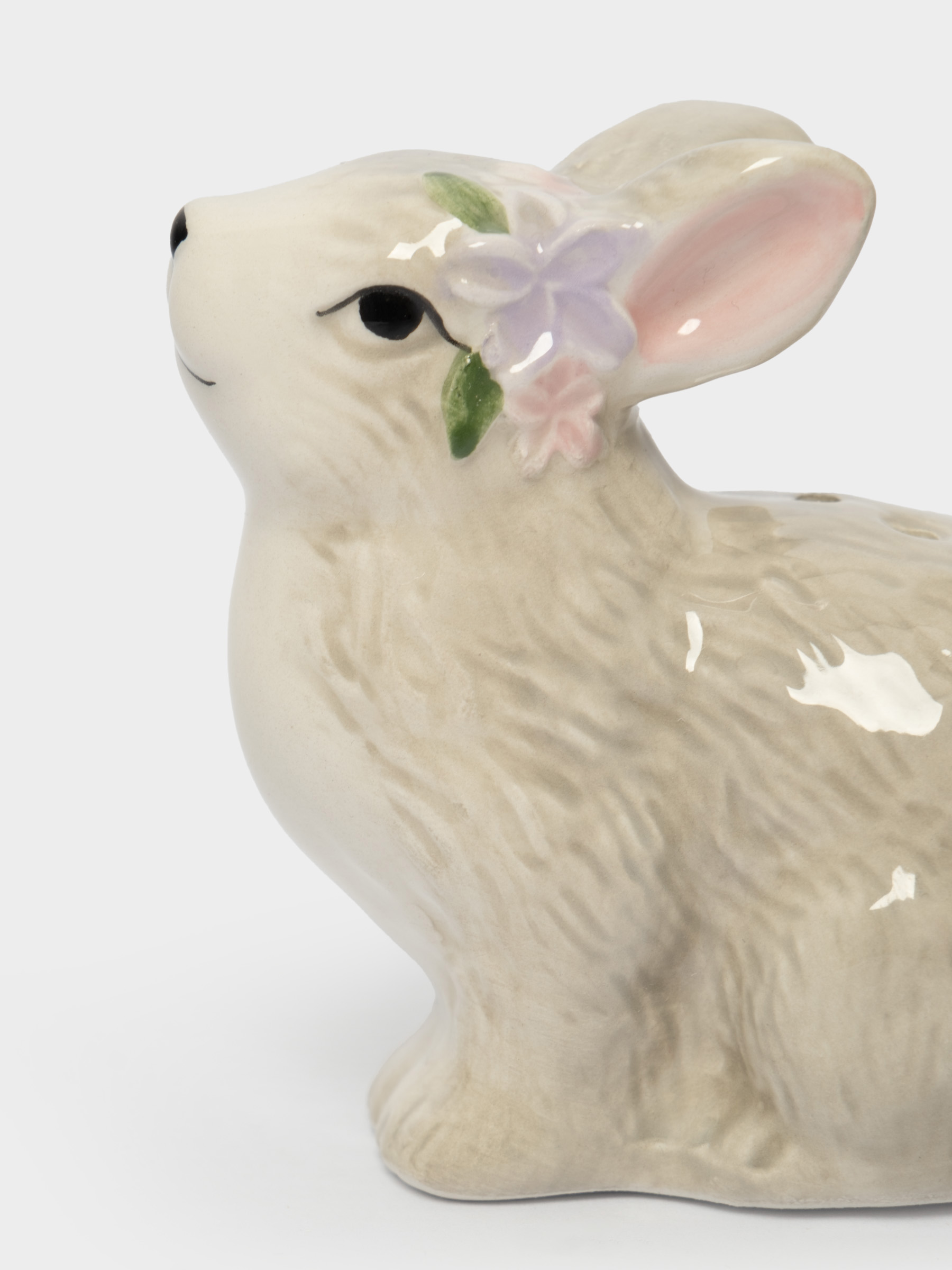 Емкость для соли или перца, 8 см, керамика, серая, Кролик с цветами, Brown Rabbit