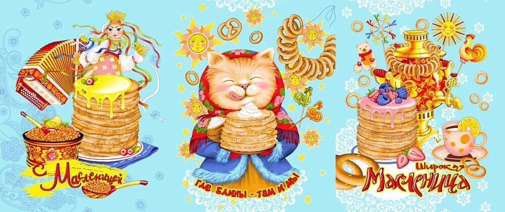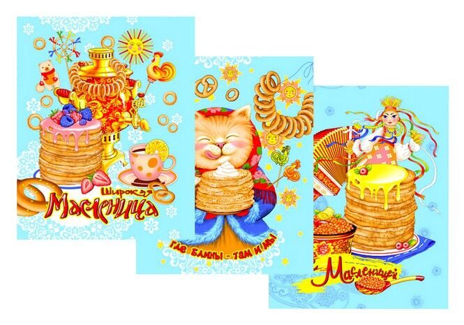 К-т полотенец "Масленица" 50*60 см. - 3 шт. вафля хлопок 100%
