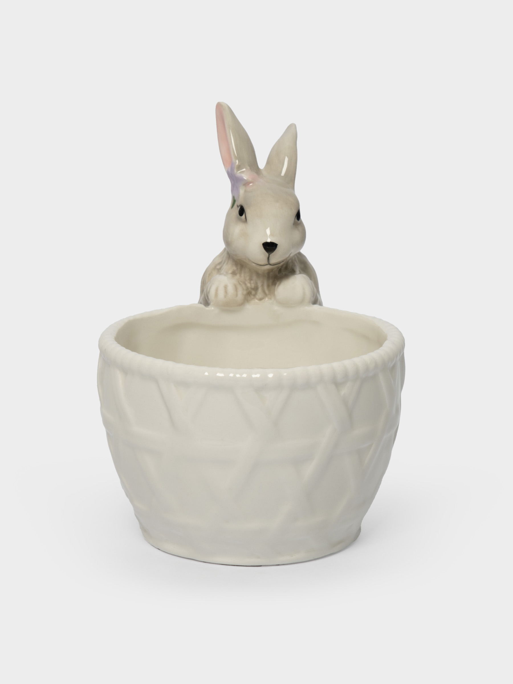 Конфетница, 12х16 см, керамика, молочно-серая, Кролик с корзинкой, Brown Rabbit
