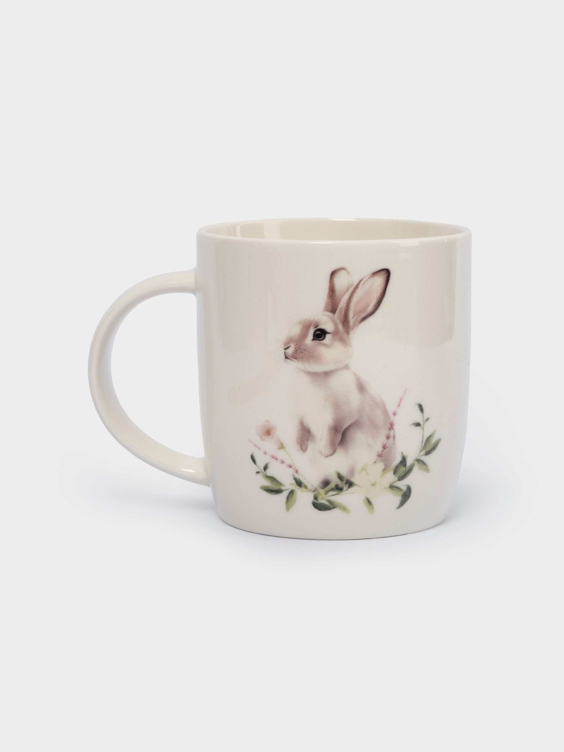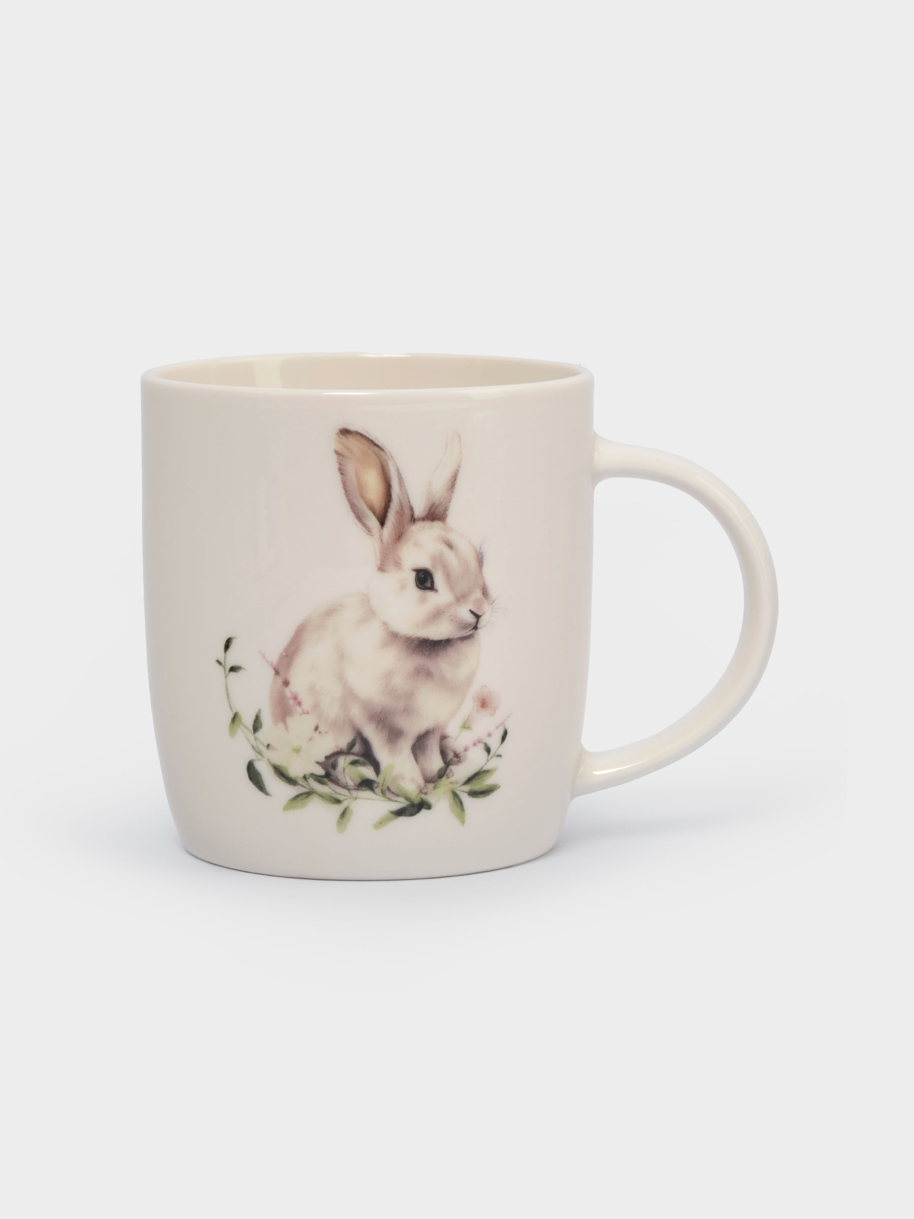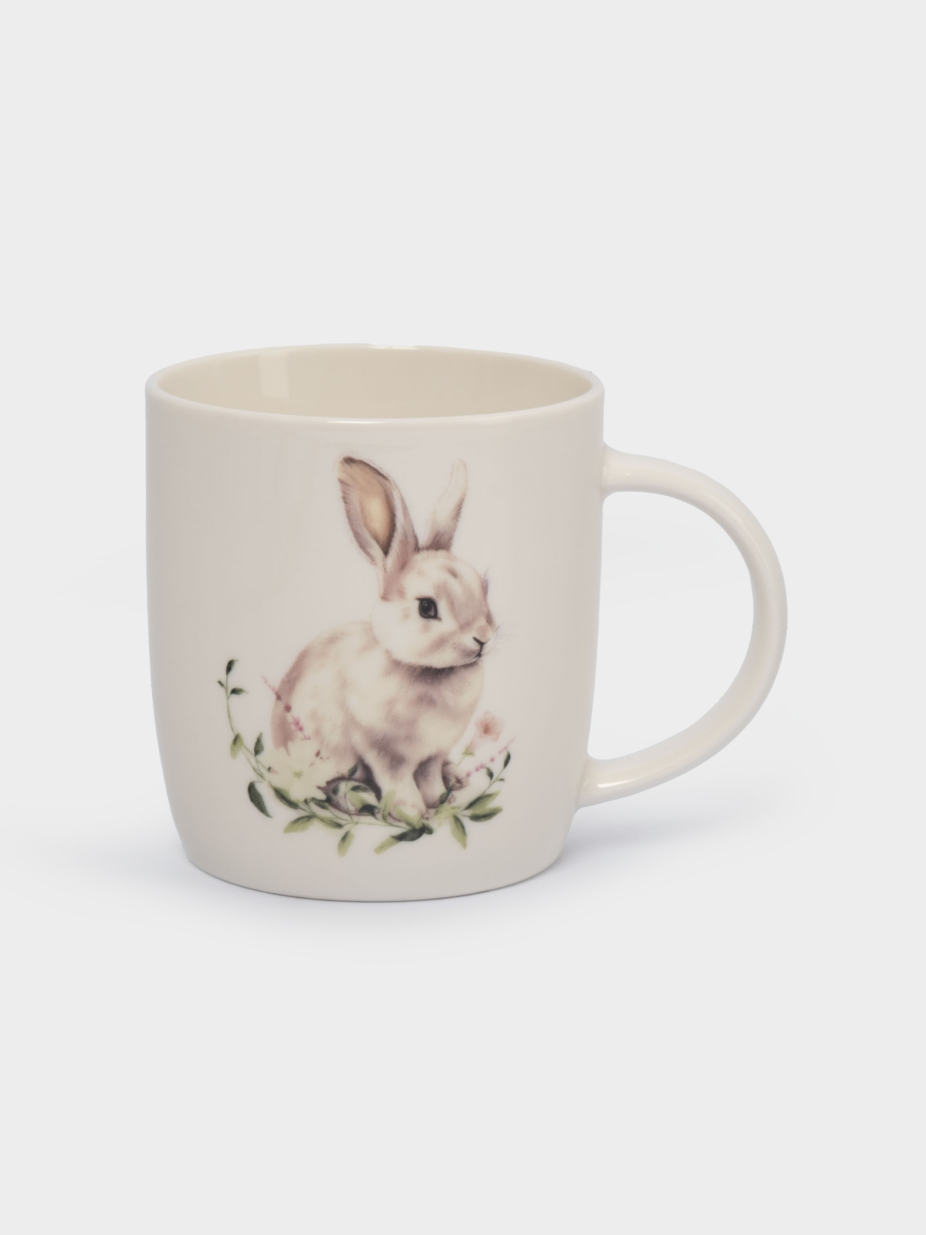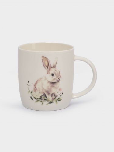 Кружка, 360 мл, фарфор N, белая, Кролик в цветах, Bunny