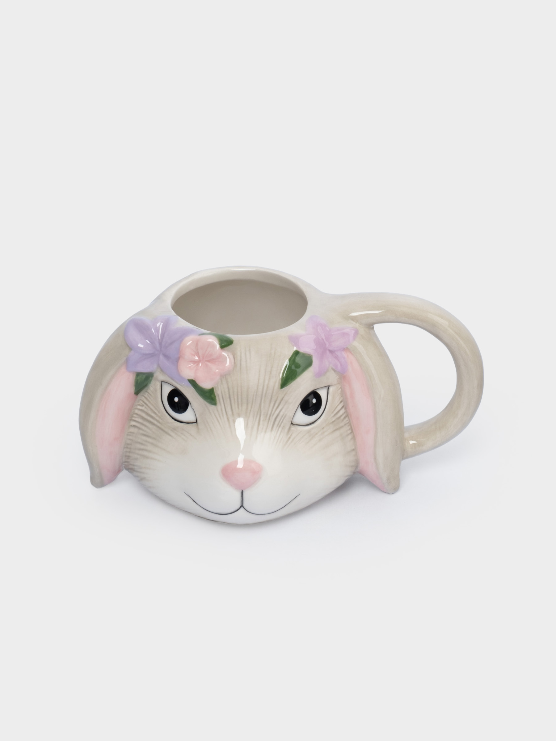 Кружка, 520 мл, керамика, серая, Кролик с цветами, Brown Rabbit