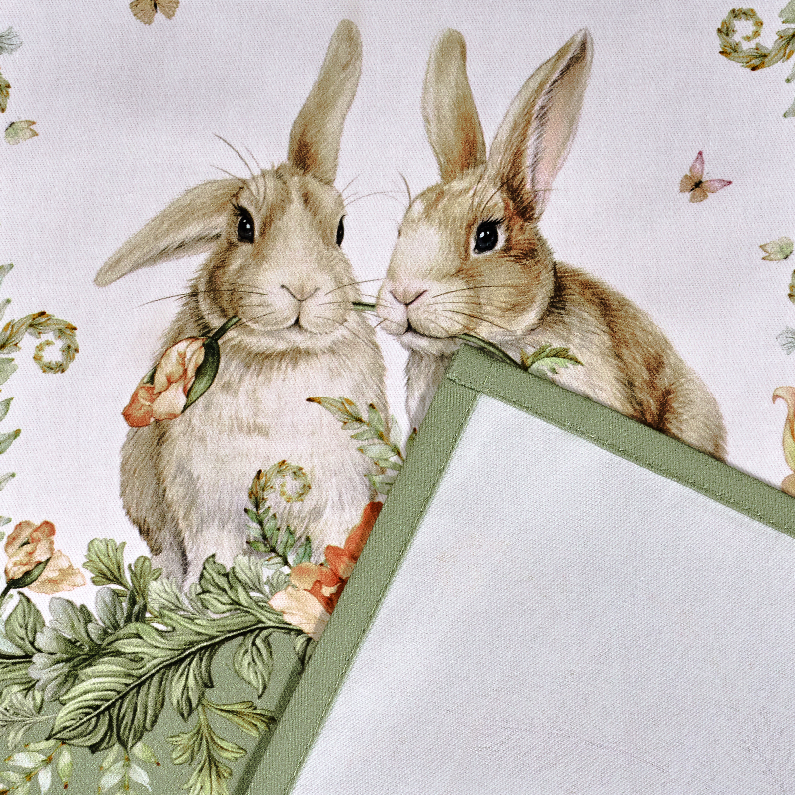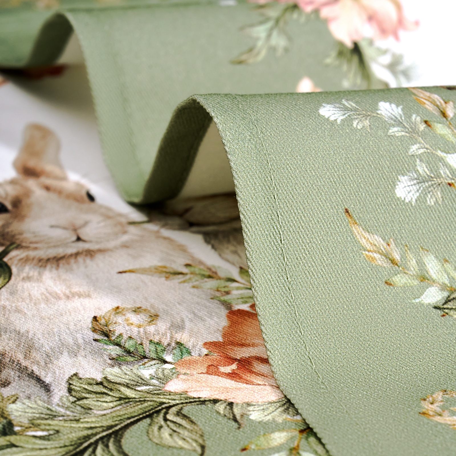 Текстильные салфетки из натурального хлопка экологичны, гипоаллергенны и подходят для многоразового использования. Рисунок с милыми кроликами выполнен методом цифровой печати, который позволяет передать чёткость линий и насыщенность оттенков. Благодаря этой технологии изображение выглядит аккуратно и детально прорисованным, а салфетки сохраняют привлекательный внешний вид даже при регулярной стирке.