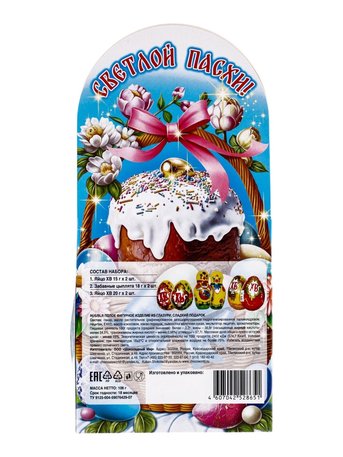 * Вес нетто всех кондитерских изделий — 106 грамм.