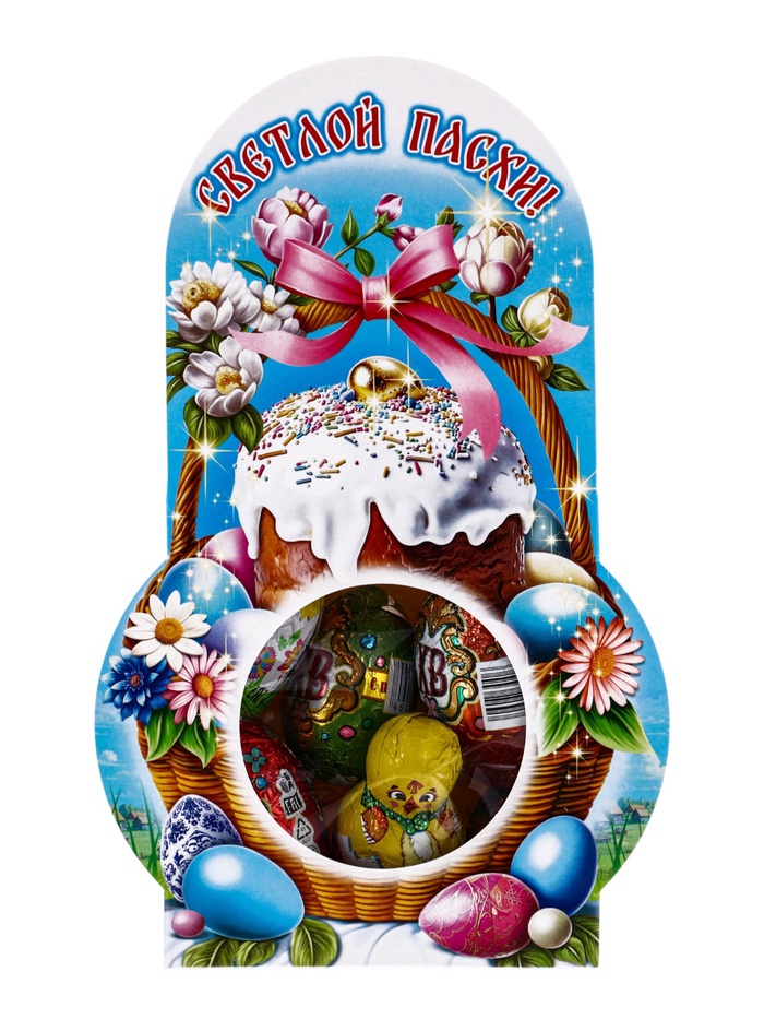 * Небольшая плетёная или стилизованная корзинка со сладостями внутри.