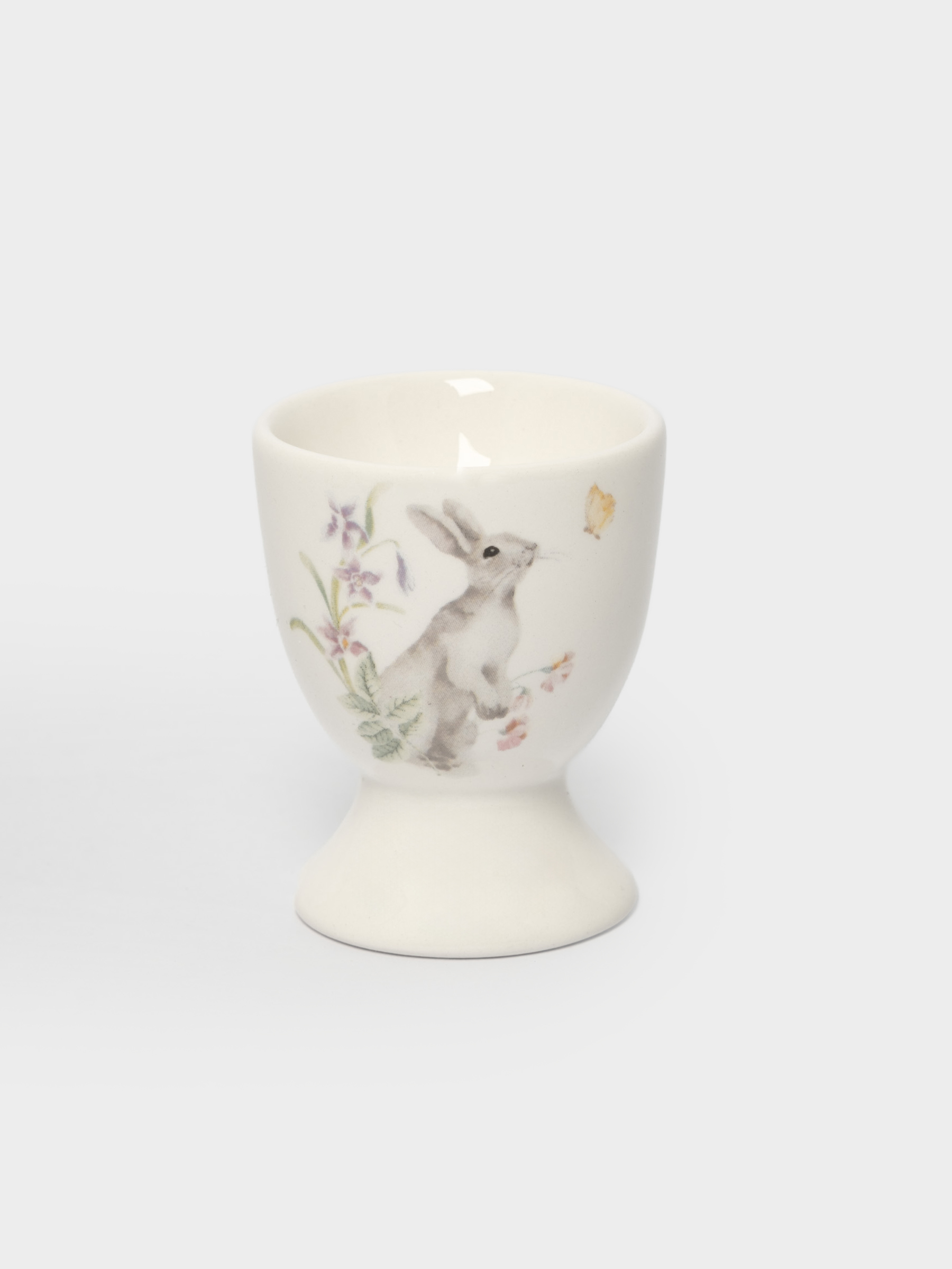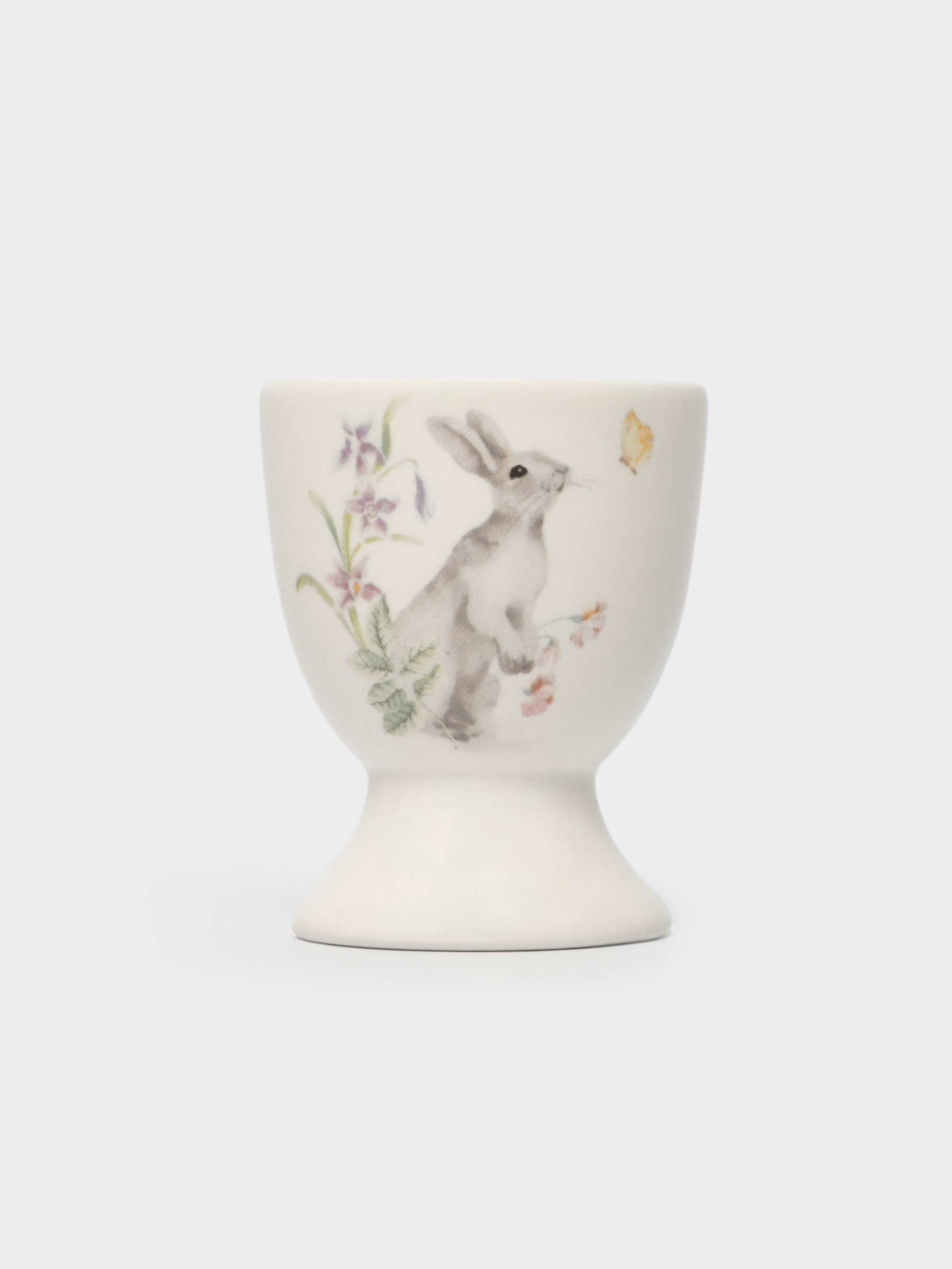 Подставка для яйца, 7 см, керамика, белая, Кролик с цветами, Flower Rabbit