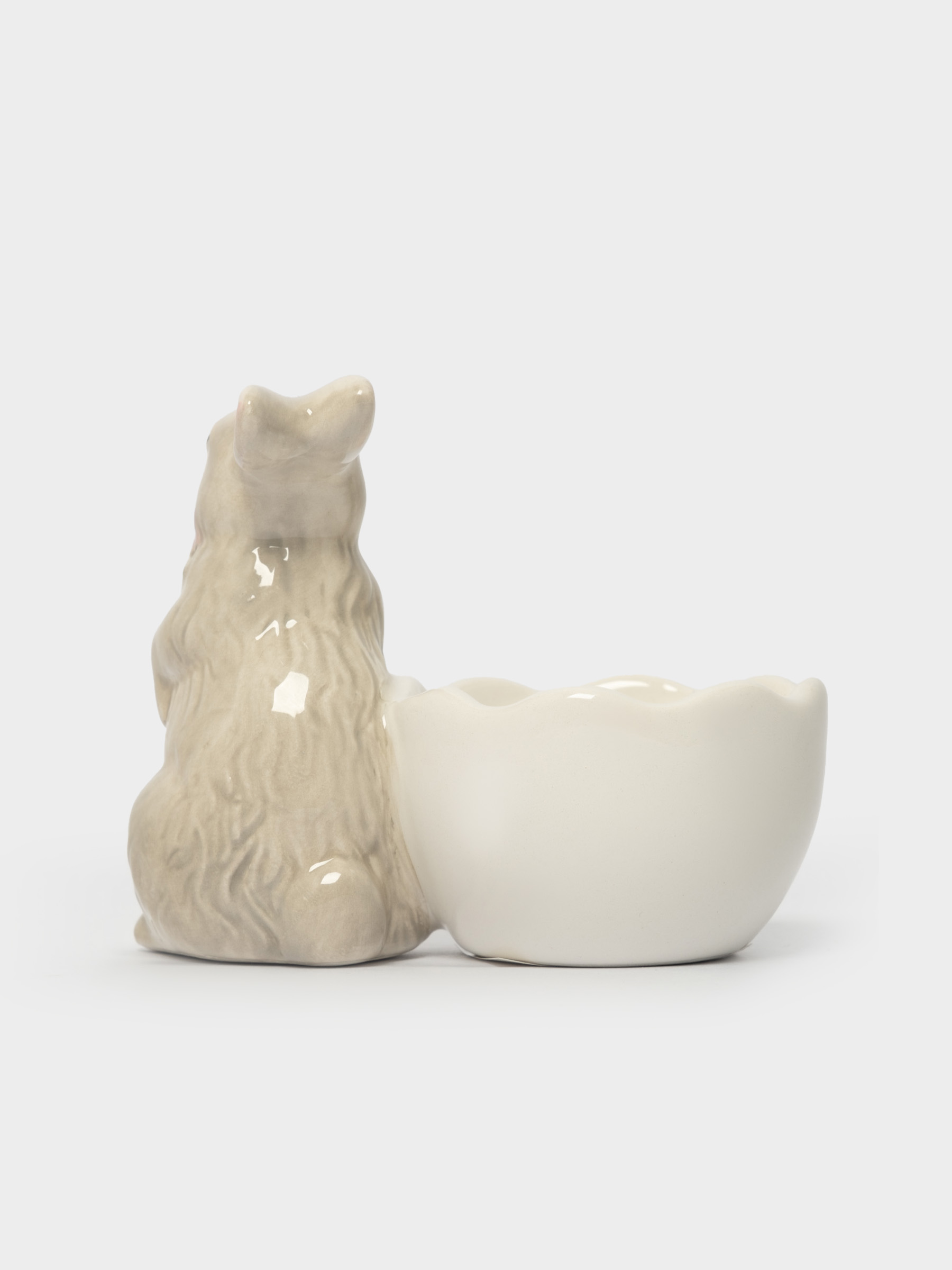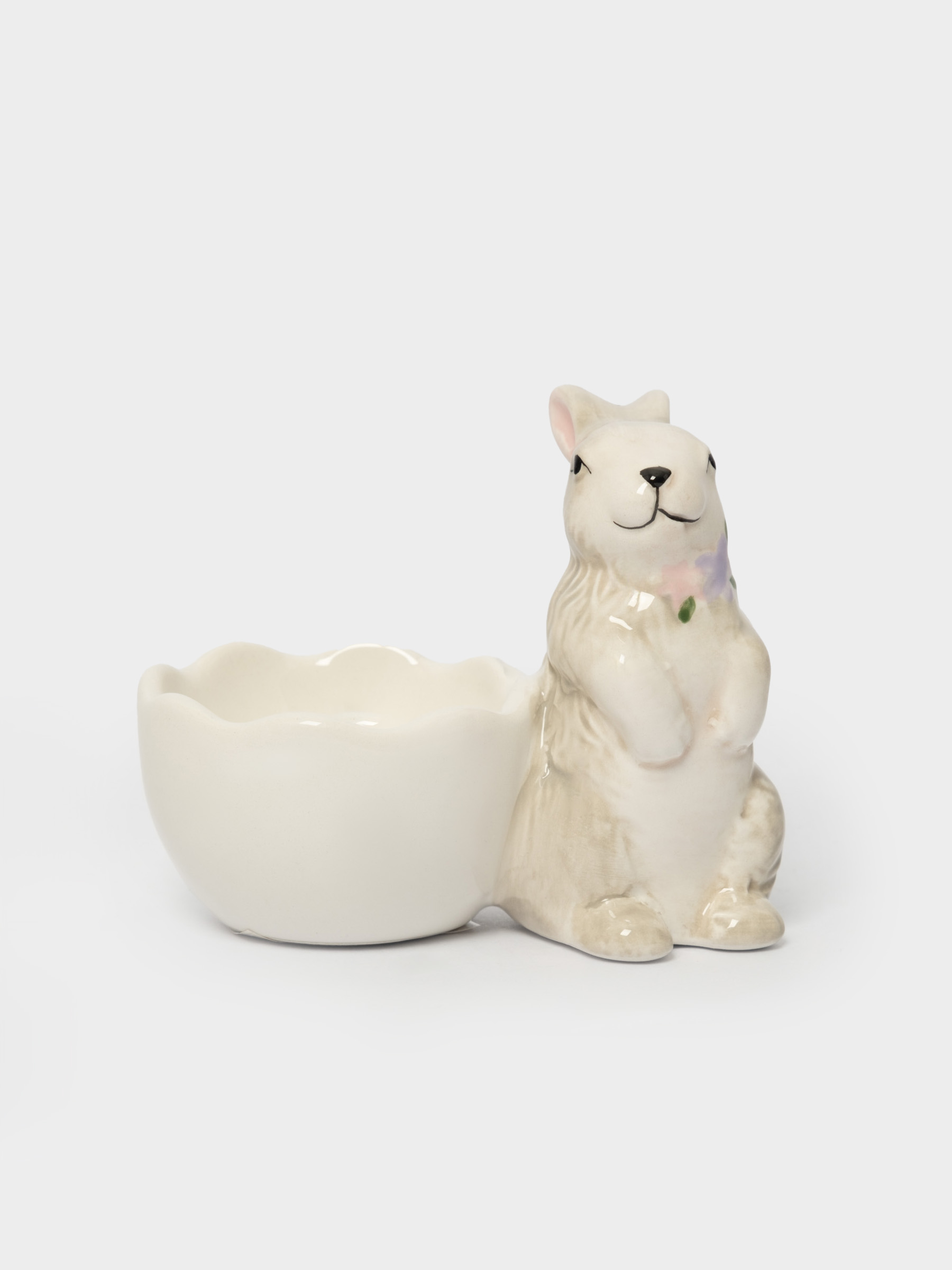 Подставка для яйца, 8 см, керамика, серая, Кролик с цветами, Brown Rabbit