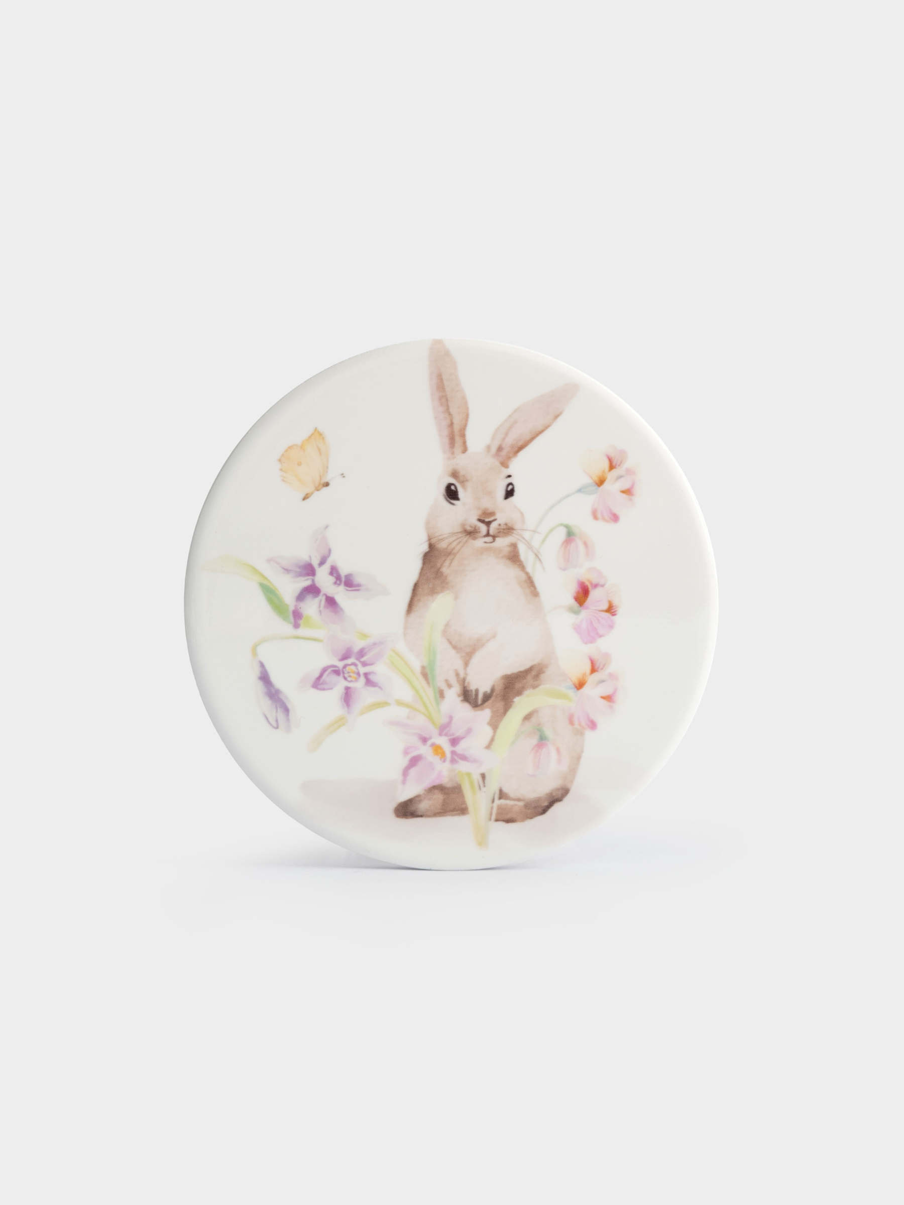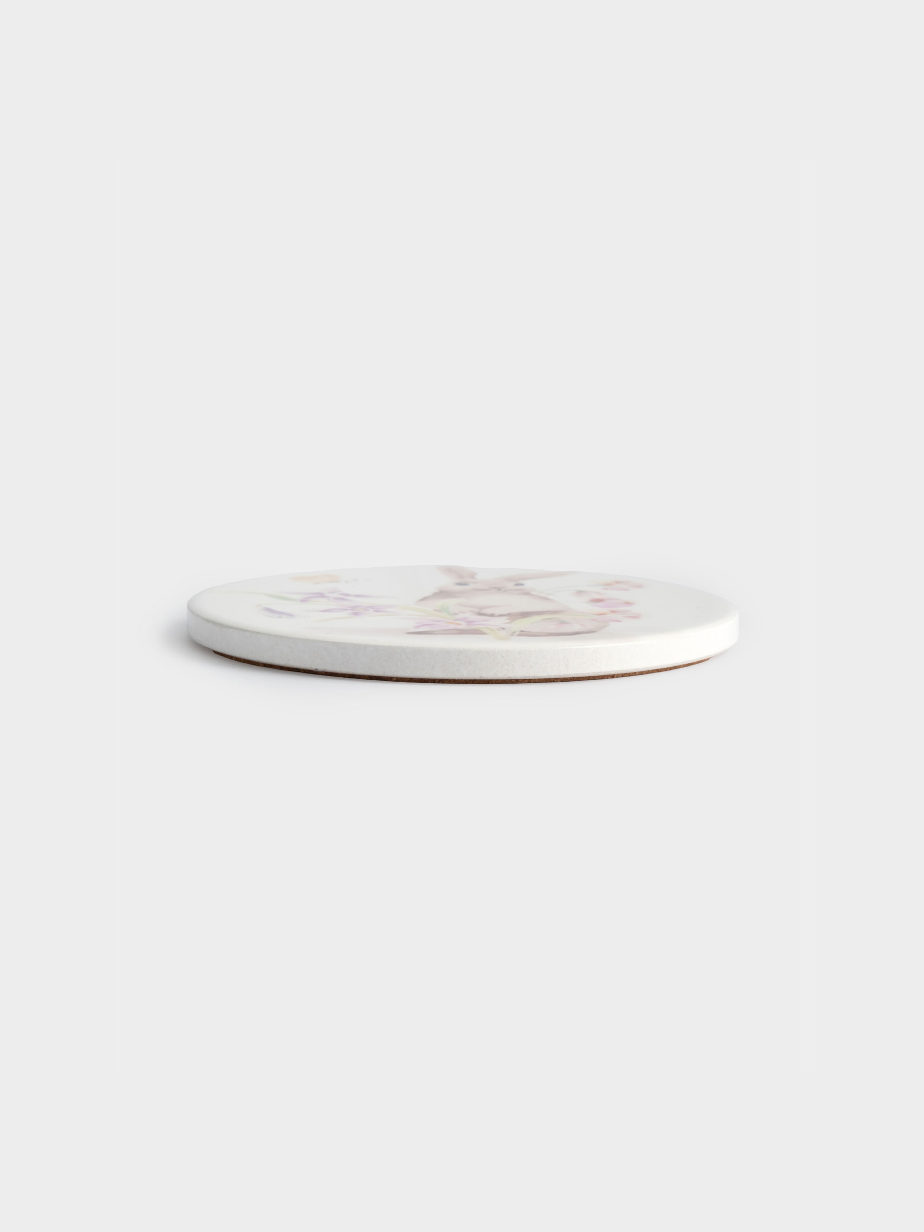 Подставка под кружку, 11 см, круглая, керамика/пробка, белая, Кролик в цветах, Flower Rabbit