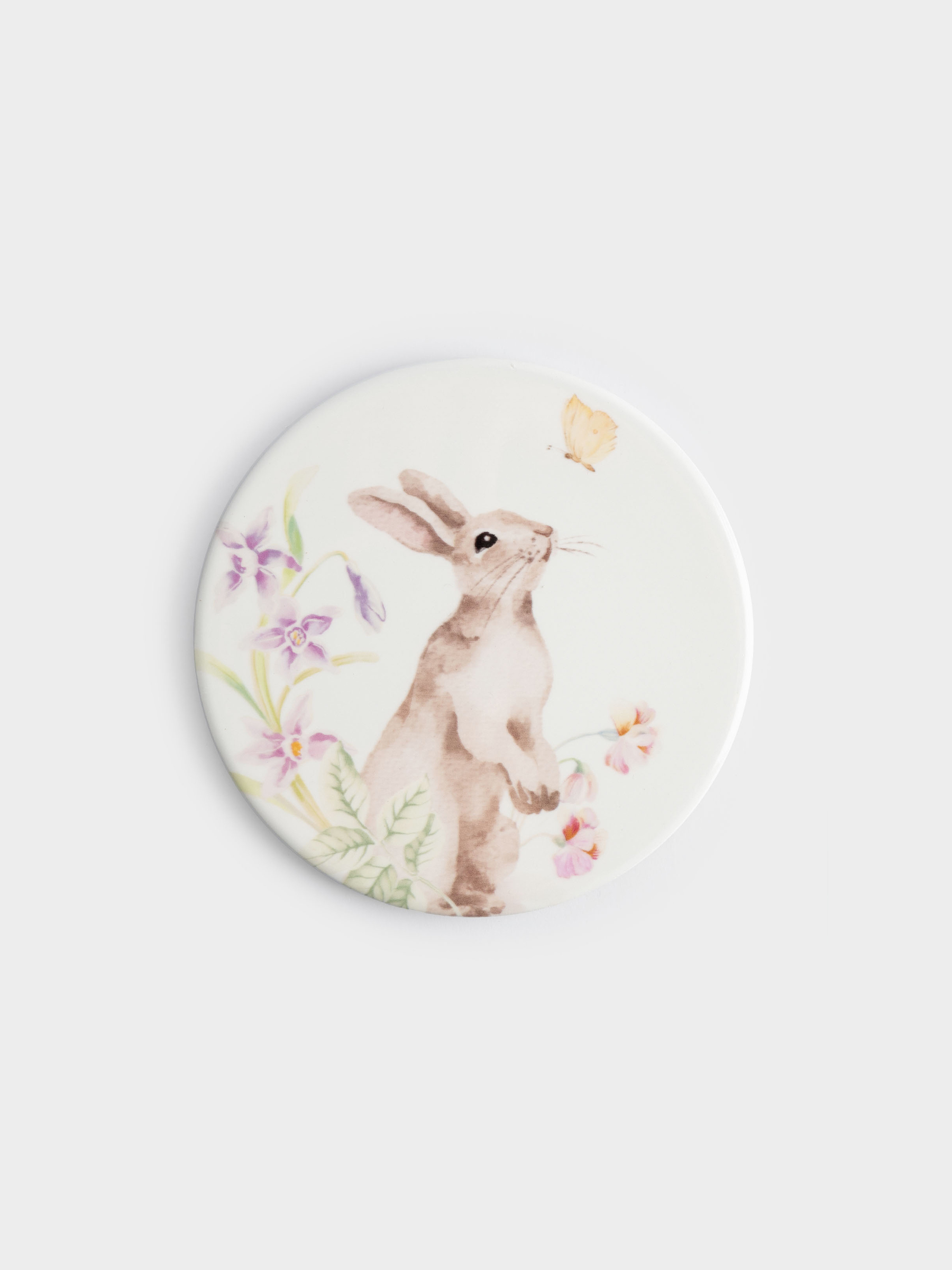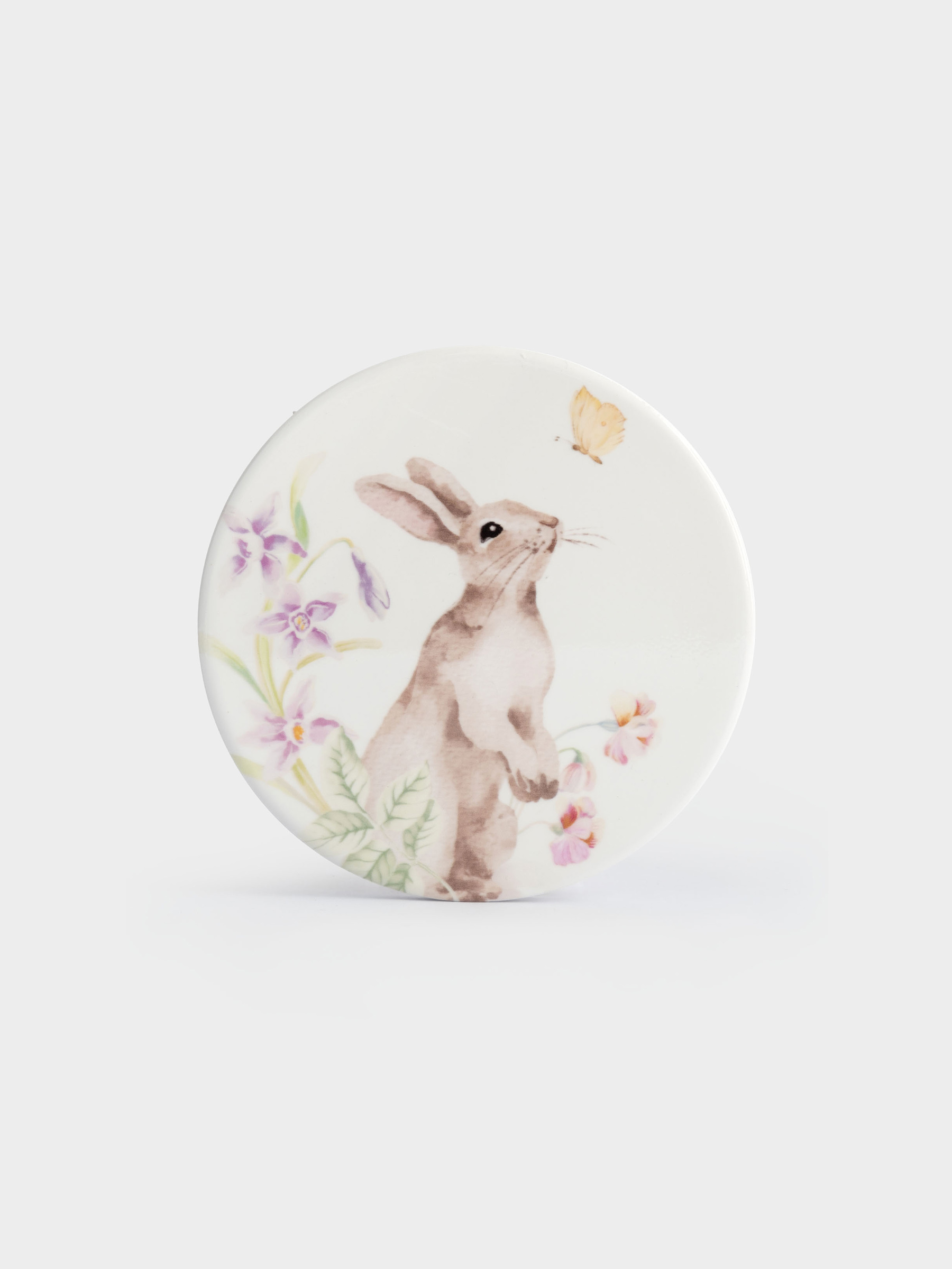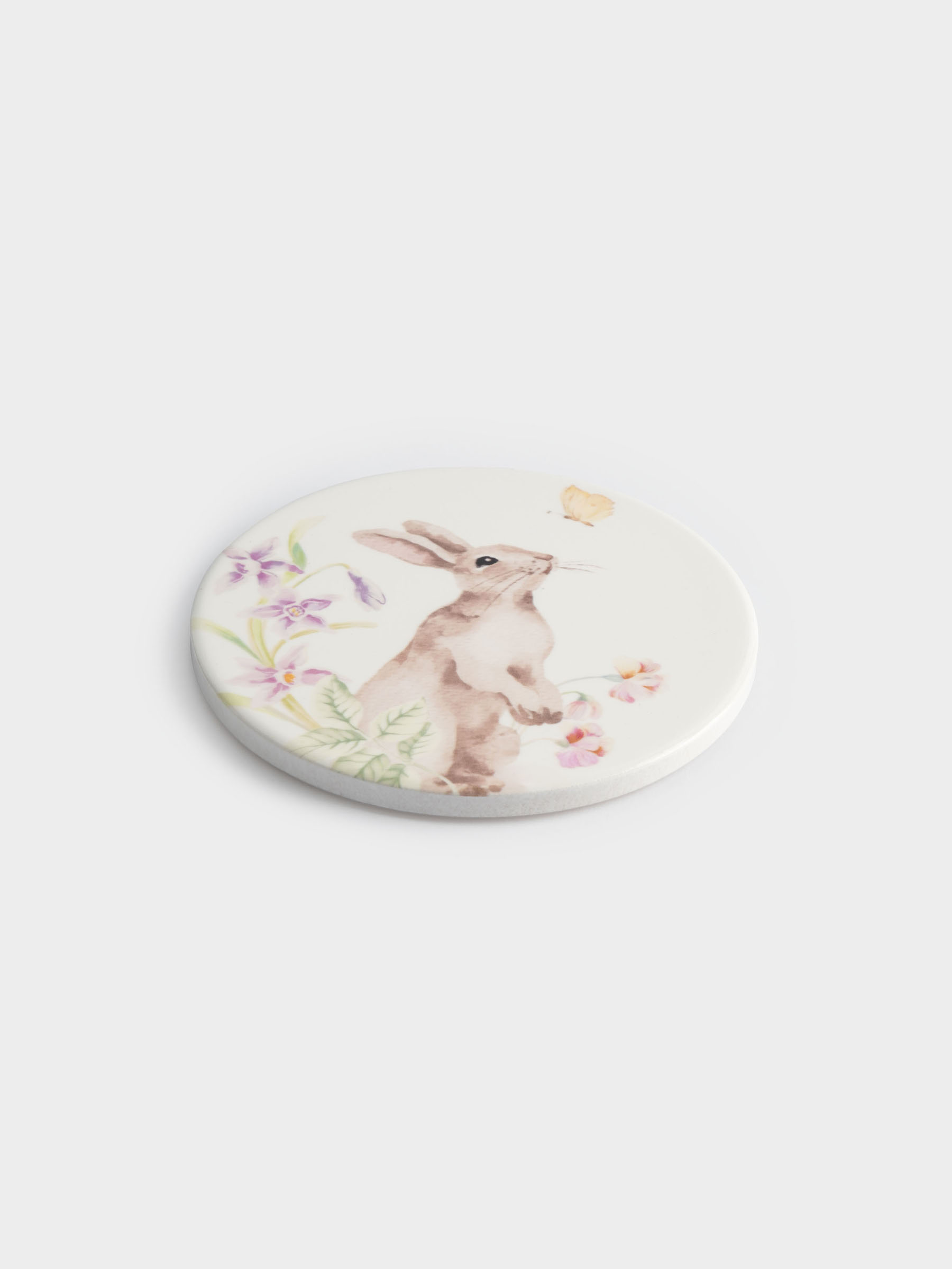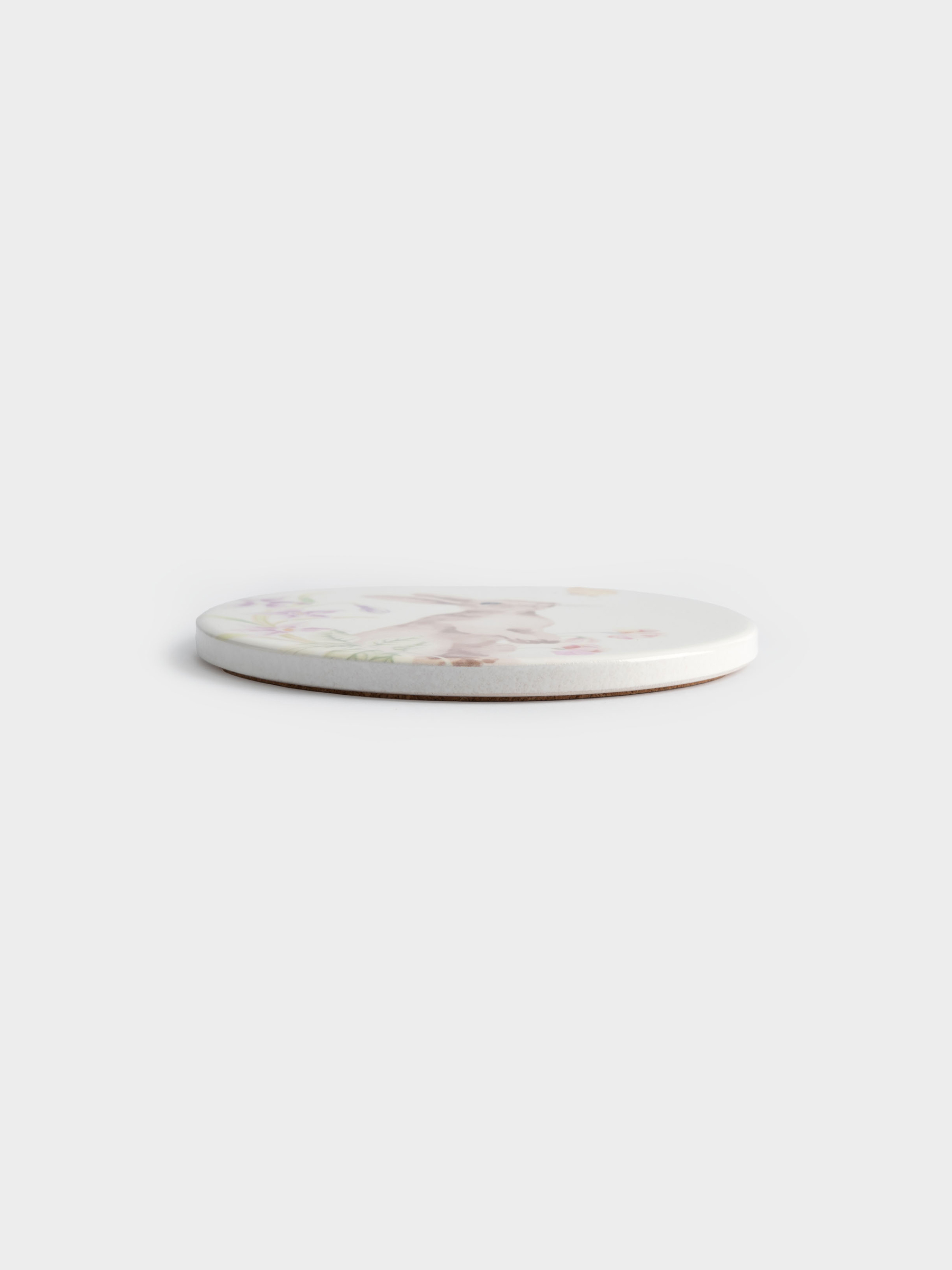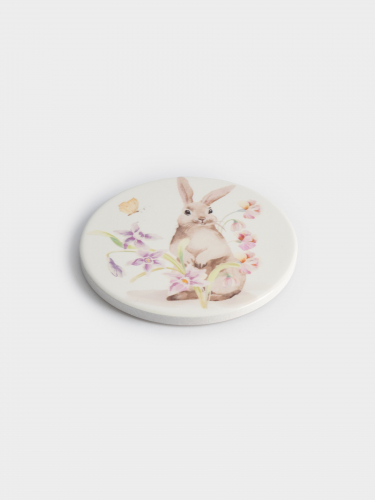 Подставка под кружку, 11 см, круглая, керамика/пробка, белая, Кролик в цветах, Flower Rabbit