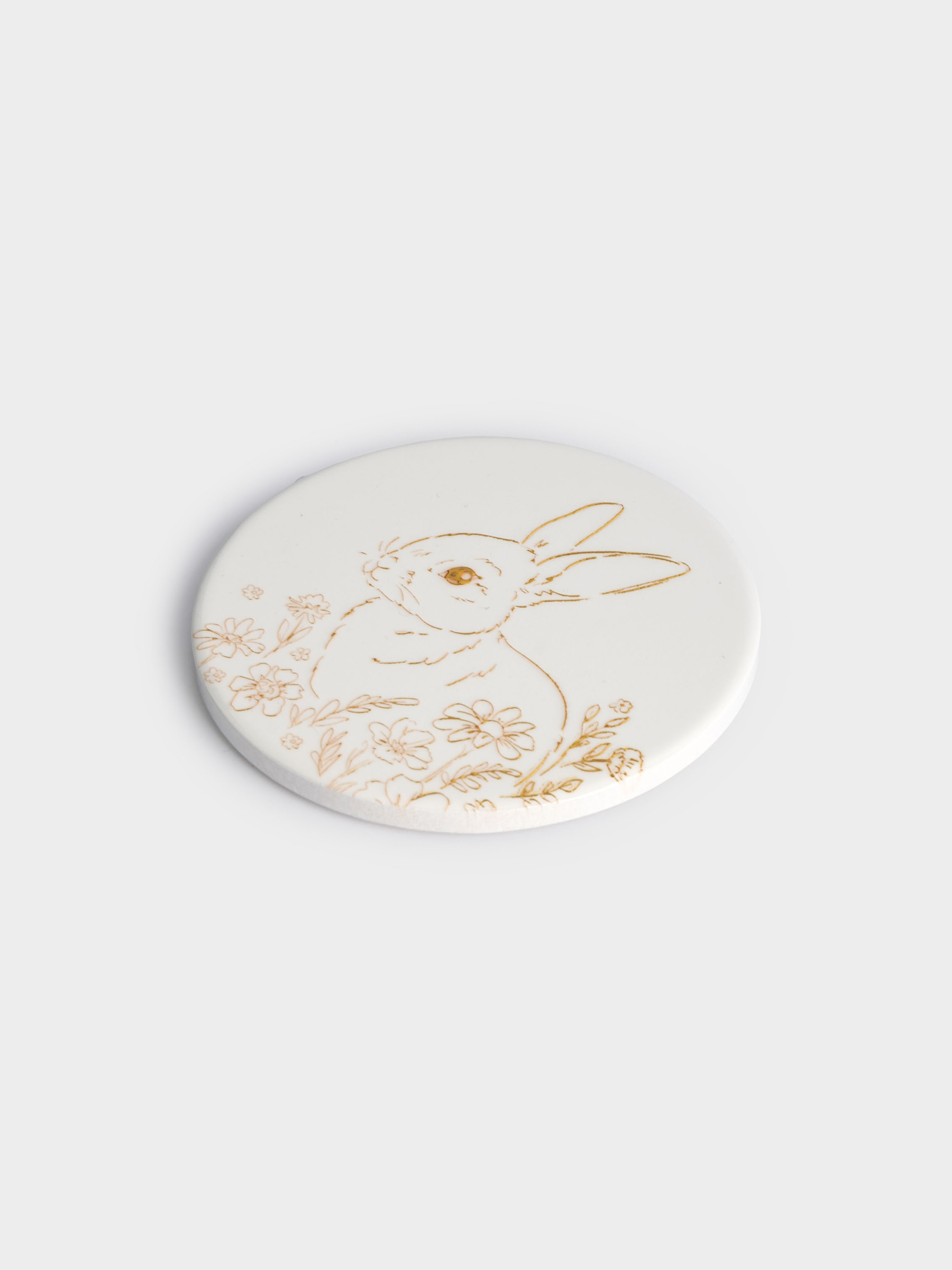 Подставка под кружку, 11 см, круглая, керамика/пробка, белая, Золотистый кролик, White Rabbit